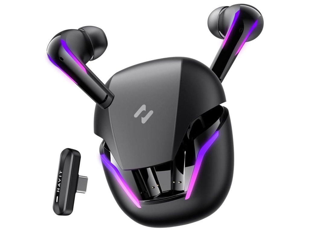 Havit herní sluchátka (TW970) – TWS, Bluetooth 5.3, RGB, dongle, USB-C, 400mAh, černá
