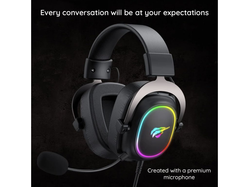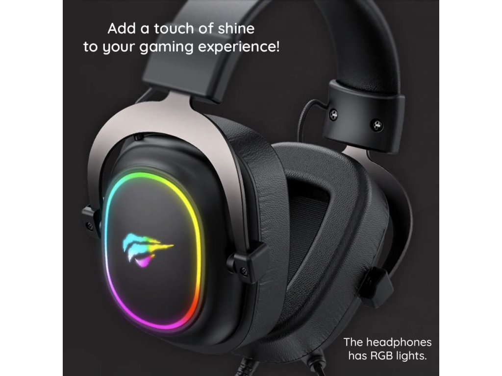 Havit - Herní sluchátka H2002P, s RGB podsvícením, mikrofon, 53mm měnič, 2m kabel - černé