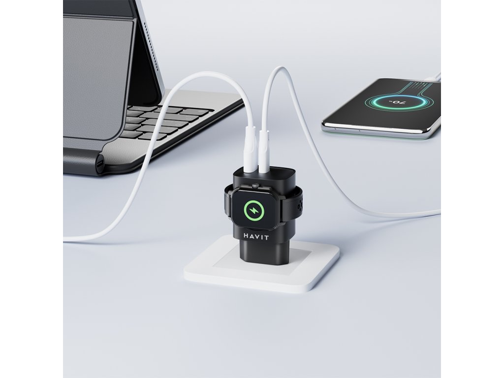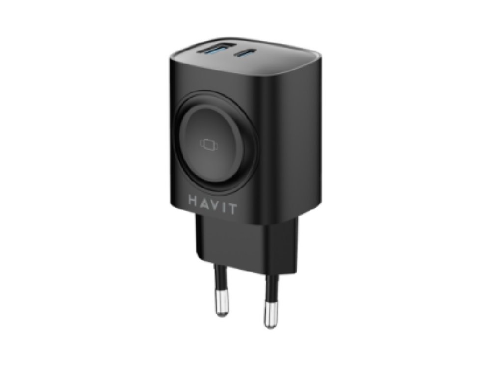 Havit síťová nabíječka (UC132 EU) – USB, USB-C, bezdrátové nabíjení, 22W, černá