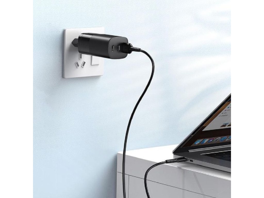 Havit - Wall Charger UC10 síťová nabíječka (2× USB-C, USB, PD65W, rychlonabíjení) - černá
