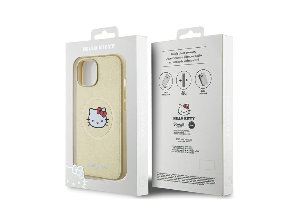 Hello Kitty Hardcase Leather Kitty Head MagSafe kryt na iPhone 15 – zlatý