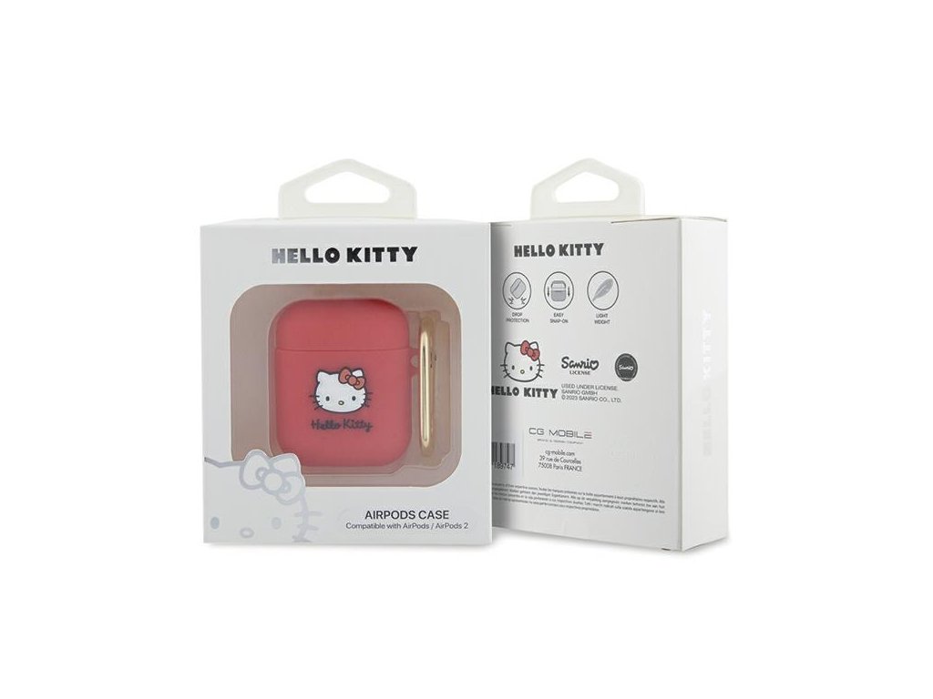 Hello Kitty Silicone 3D Kitty Head pouzdro pro Apple AirPods 1/2 – červené
