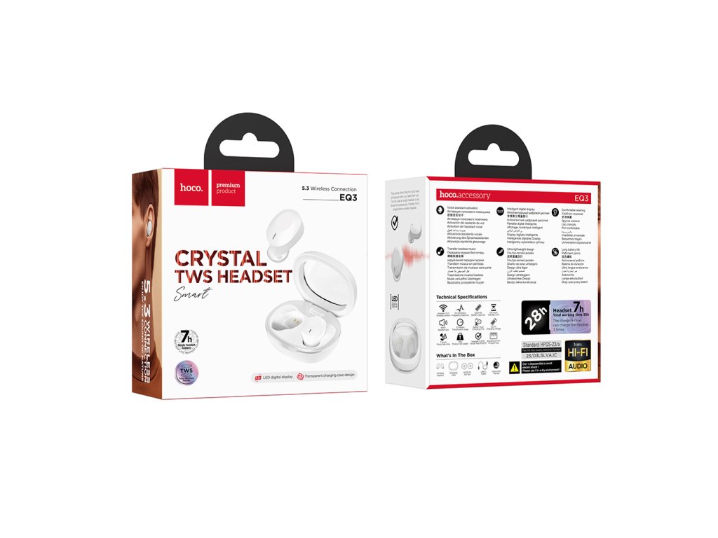 Hoco Bezdrátová sluchátka (EQ3) - TWS, Bluetooth 5.3, LED digitální displej - Bílá