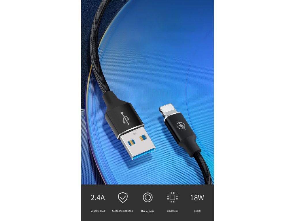 Datový nabíjecí kabel s USB a Lighting konektorem, zajistí přenos dat a rychlé dobití Vašich zařízení.