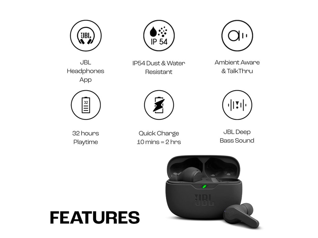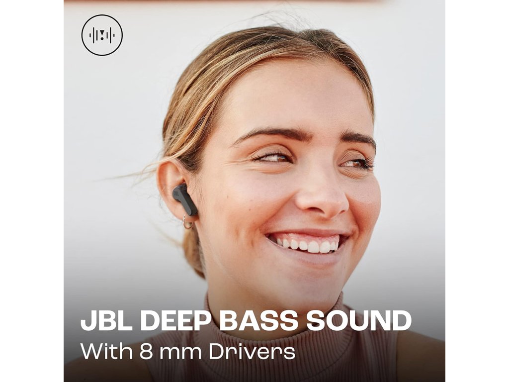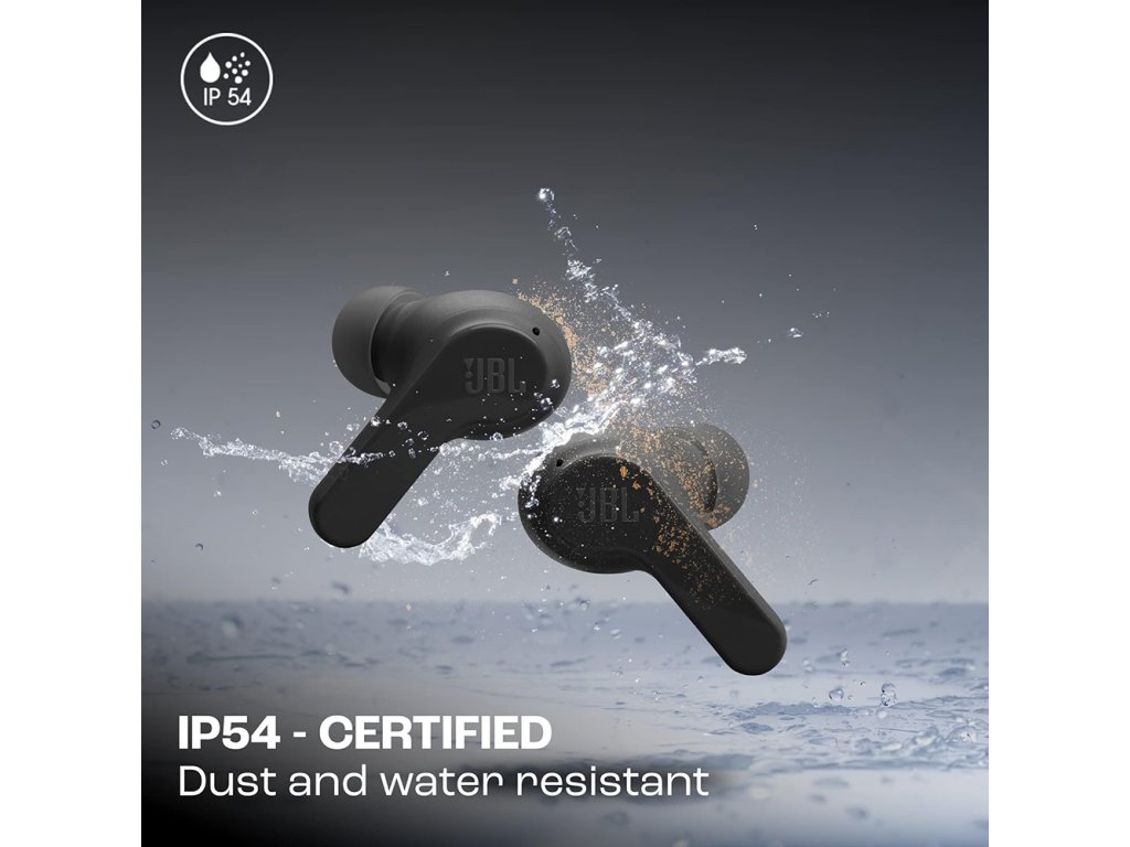 JBL Bezdrátová Sluchátka (Wave Beam) - TWS, Mikrofon, Hluboký Basový Zvuk, IP54 - Černé