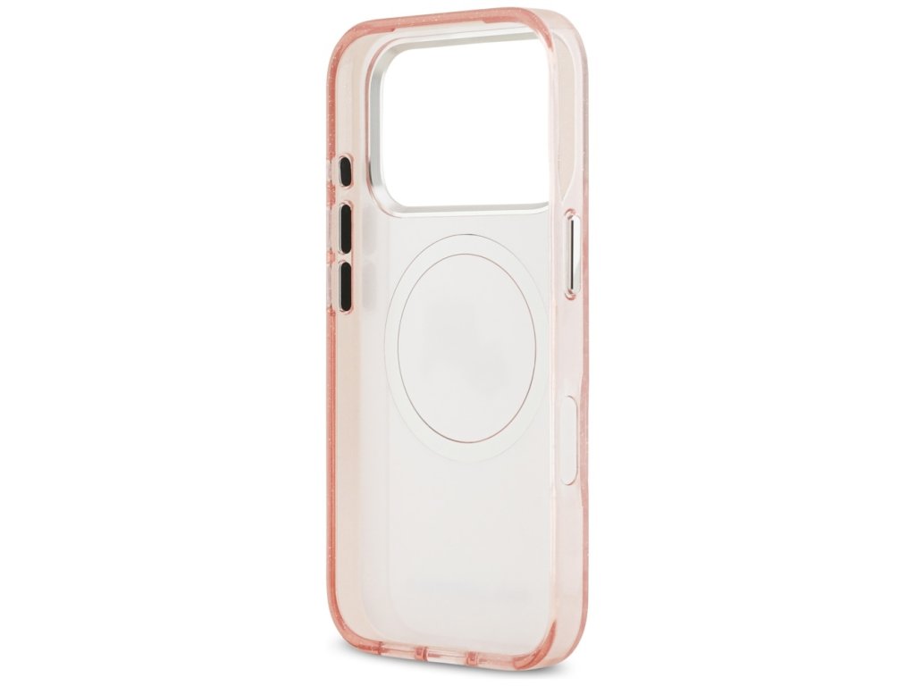 Karl Lagerfeld – Glitter MagSafe obal na iPhone 17 Pro Max – růžový Karl & Choupette Head