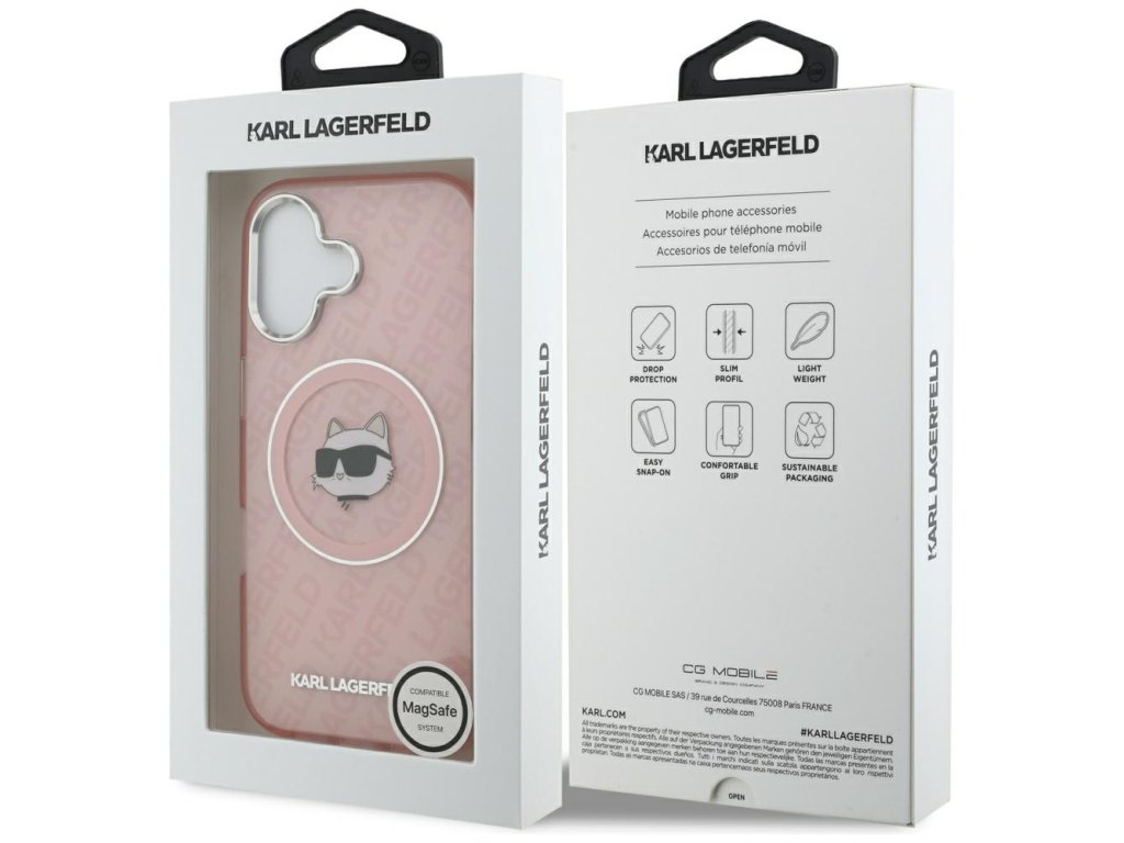 Karl Lagerfeld – IML MagSafe obal na iPhone 17 – růžový Choupette`s Head