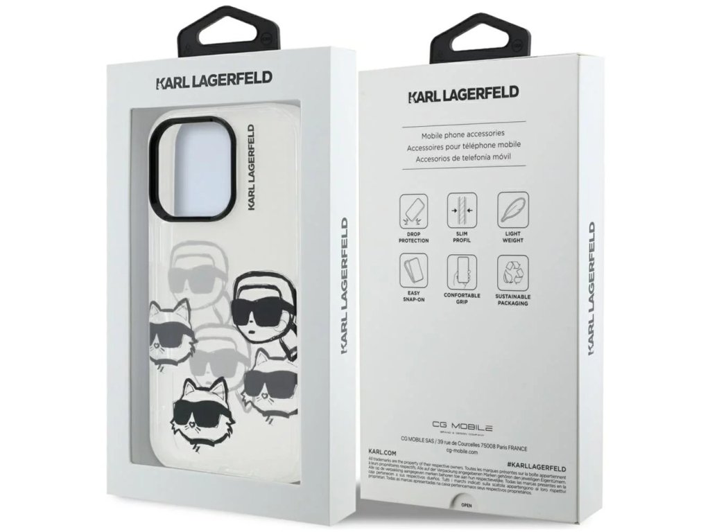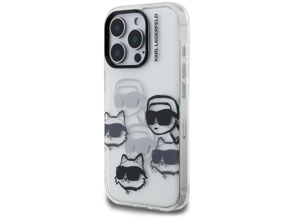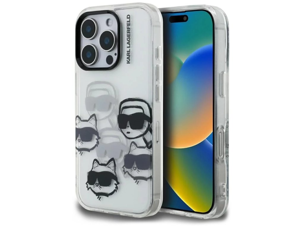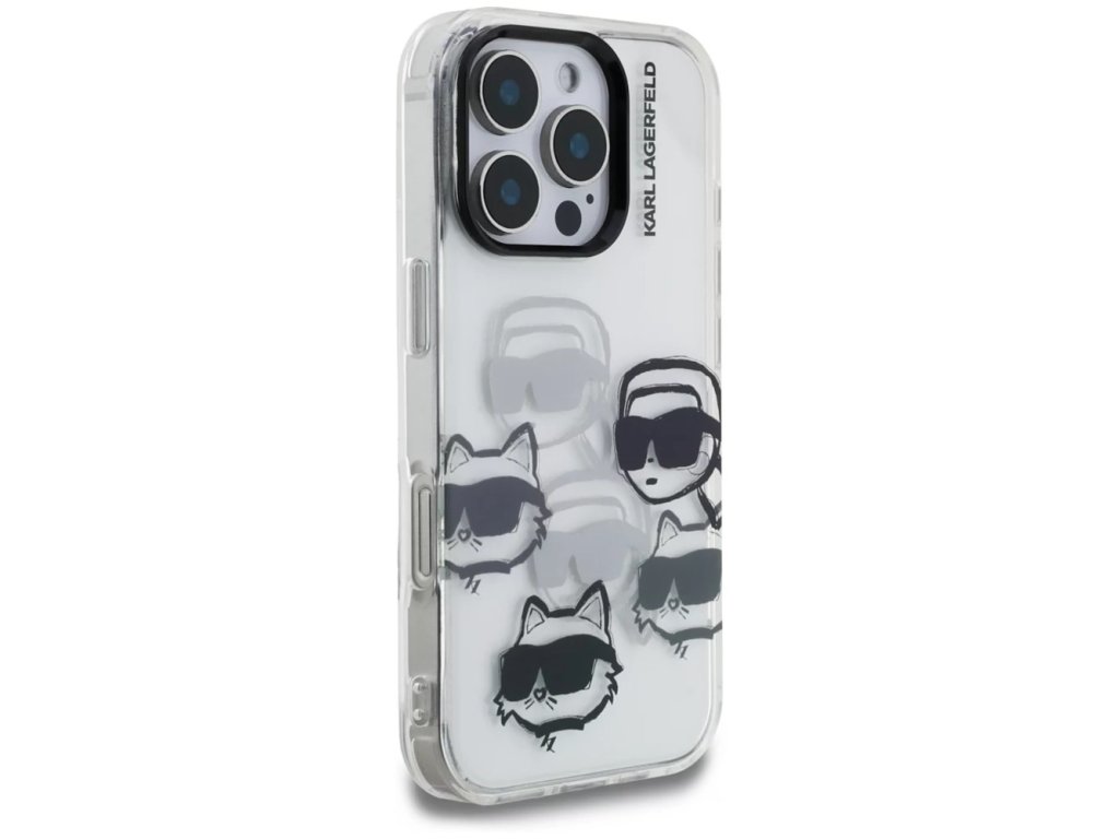 Karl Lagerfeld – IML Multi Head Pattern obal na iPhone 16 Pro - průhledný Karl&Choupette Head