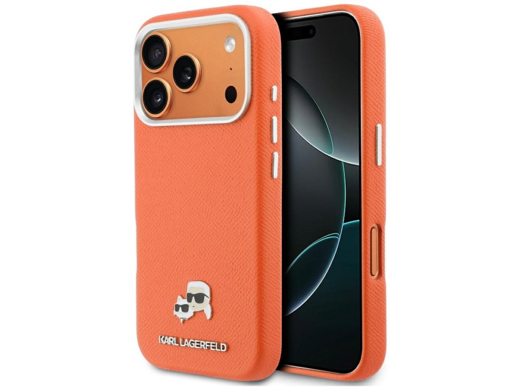 Karl Lagerfeld – Leather MagSafe K&C Head Pin kožené pouzdro pro iPhone 17 Pro Max – oranžové