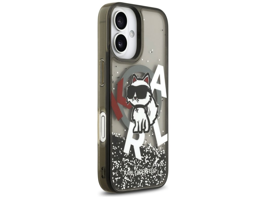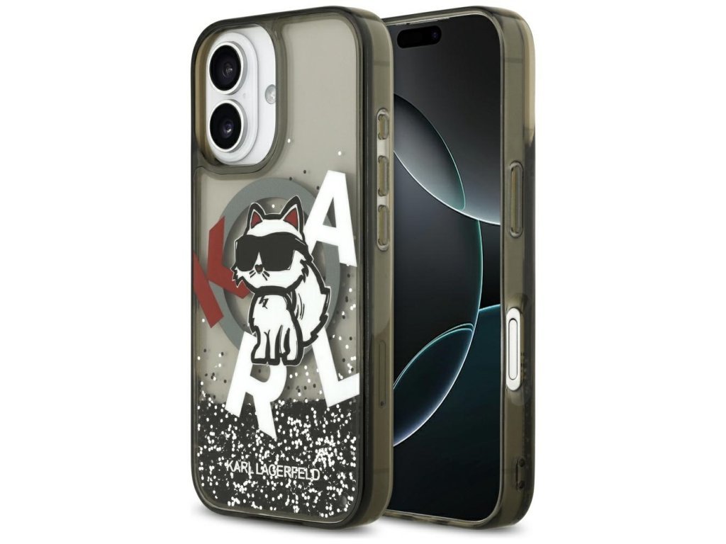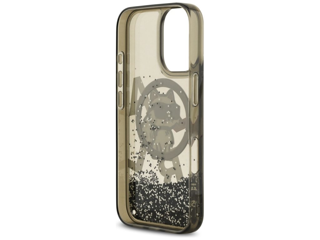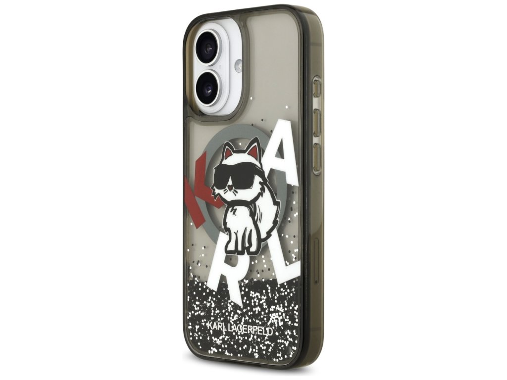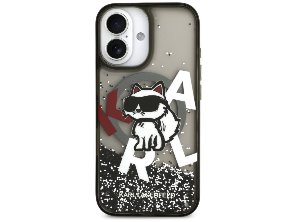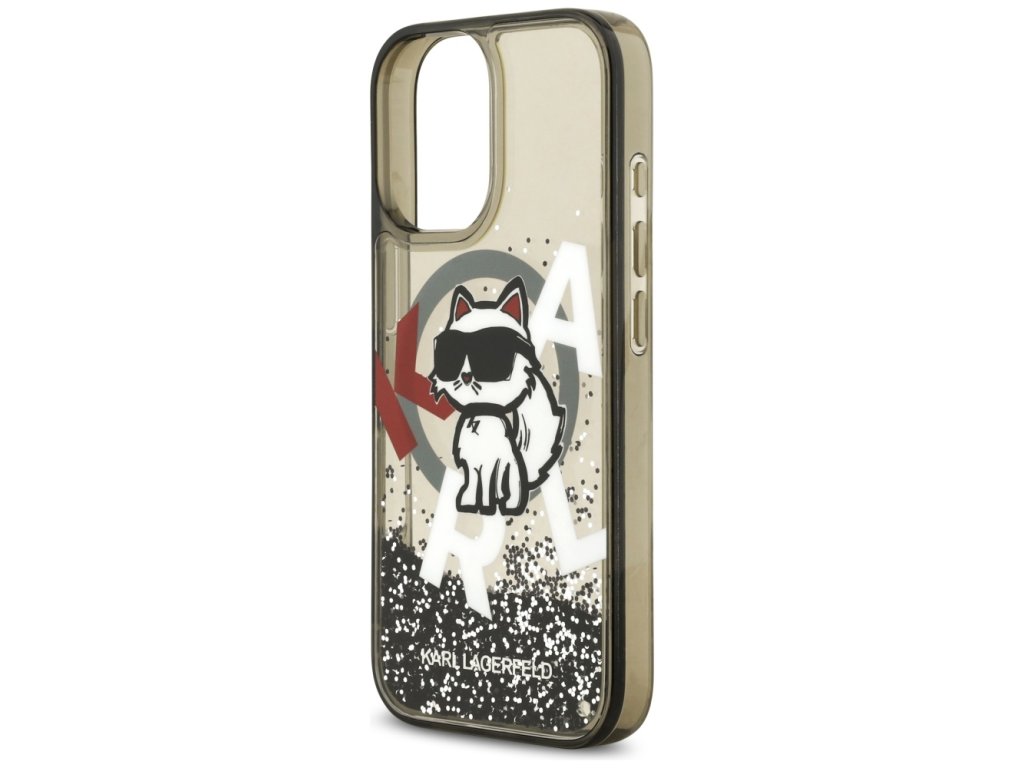 Karl Lagerfeld – Liquid Glitter Choupette Logo MagSafe obal na iPhone 17 – černý