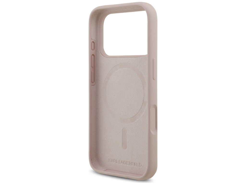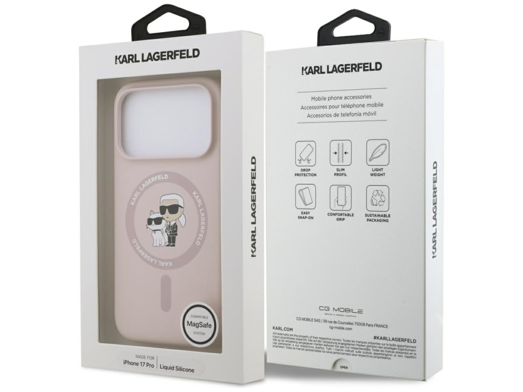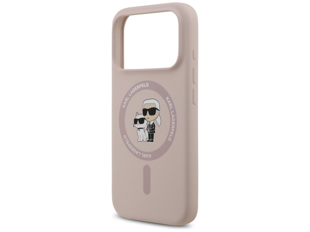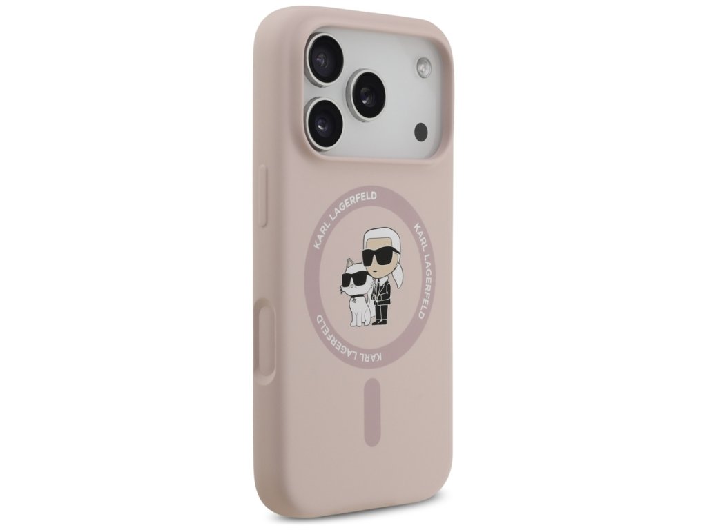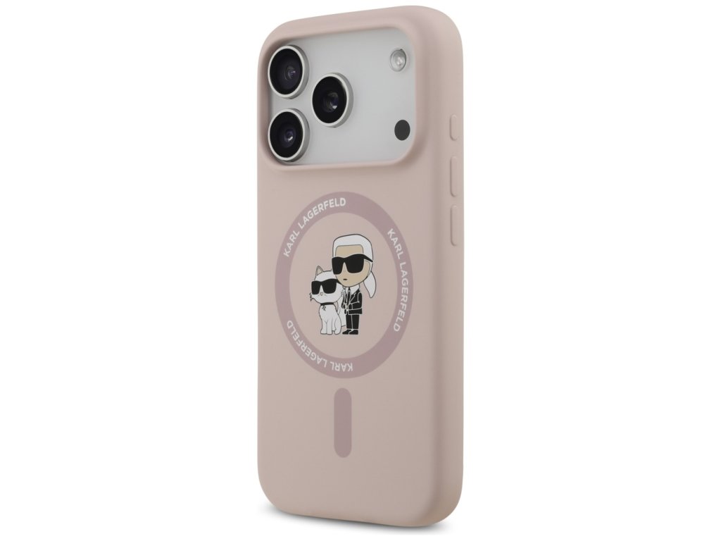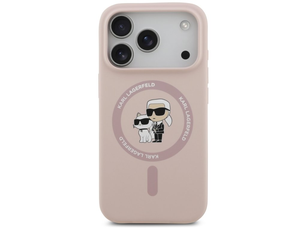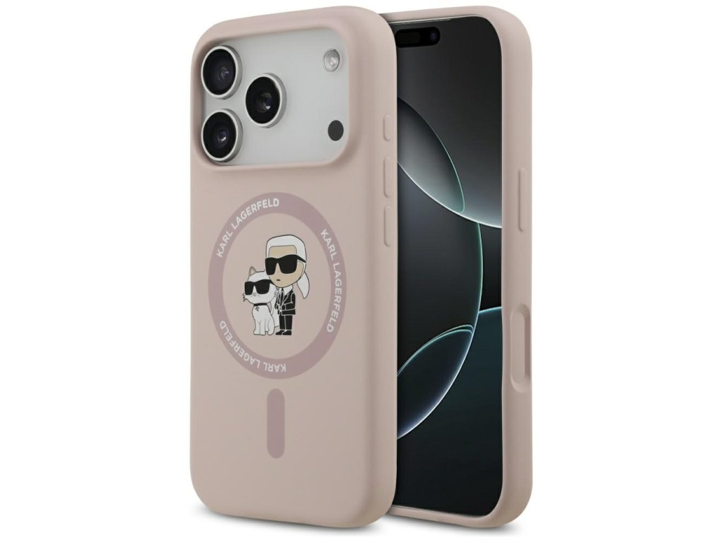 Karl Lagerfeld – Silicone Ring MagSafe obal na iPhone 17 Pro – růžový Karl & Choupette