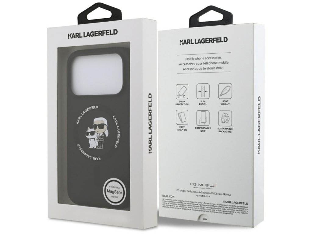 Karl Lagerfeld – Silicone Ring MagSafe obal na iPhone 17 Pro Max – černý Karl & Choupette