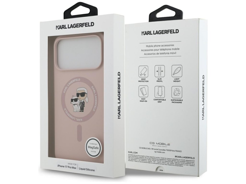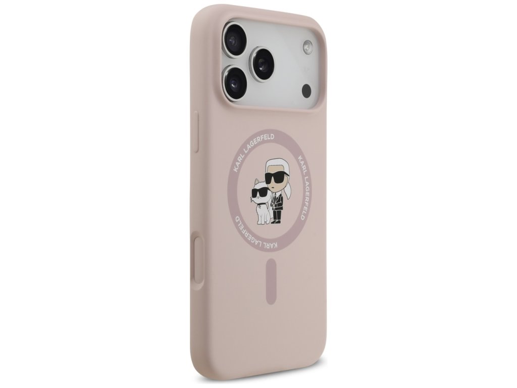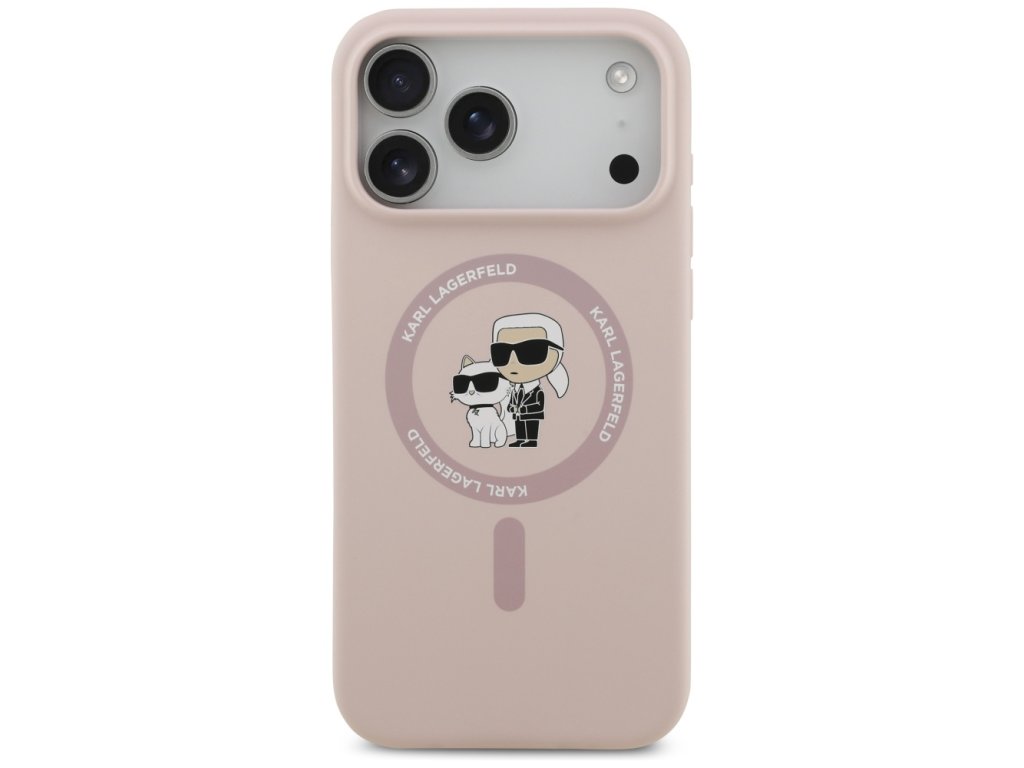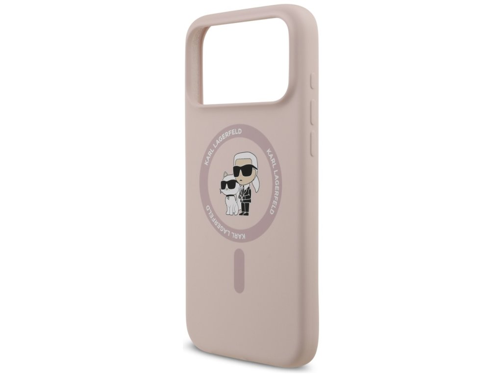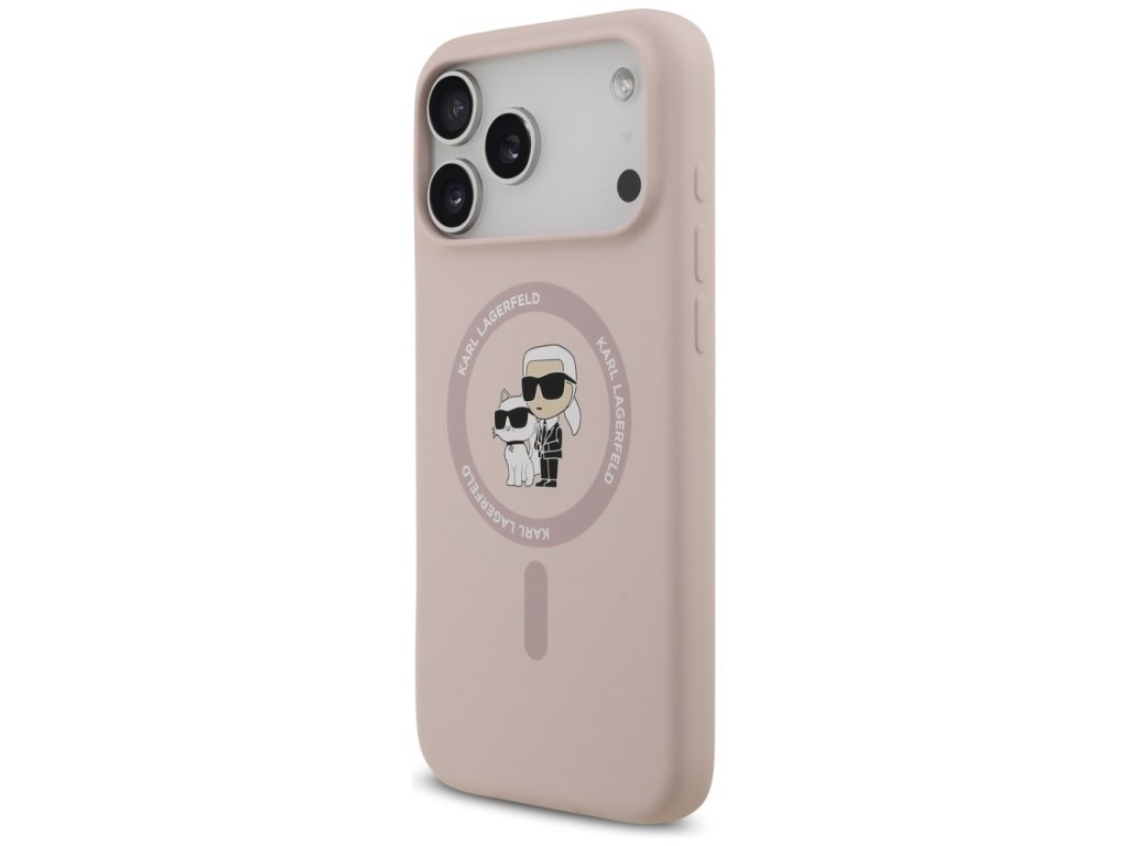 Karl Lagerfeld – Silicone Ring MagSafe obal na iPhone 17 Pro Max – růžový Karl & Choupette