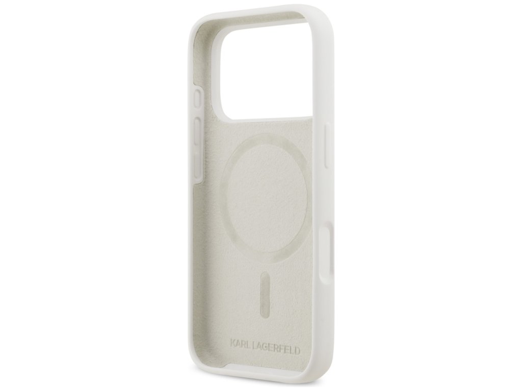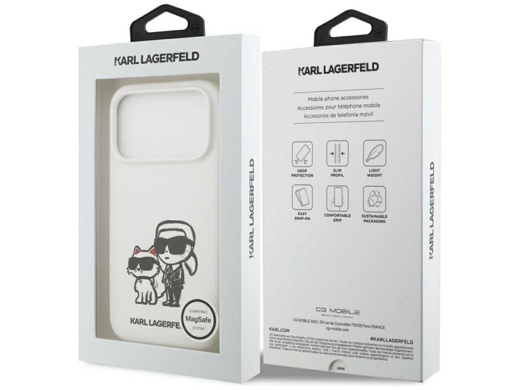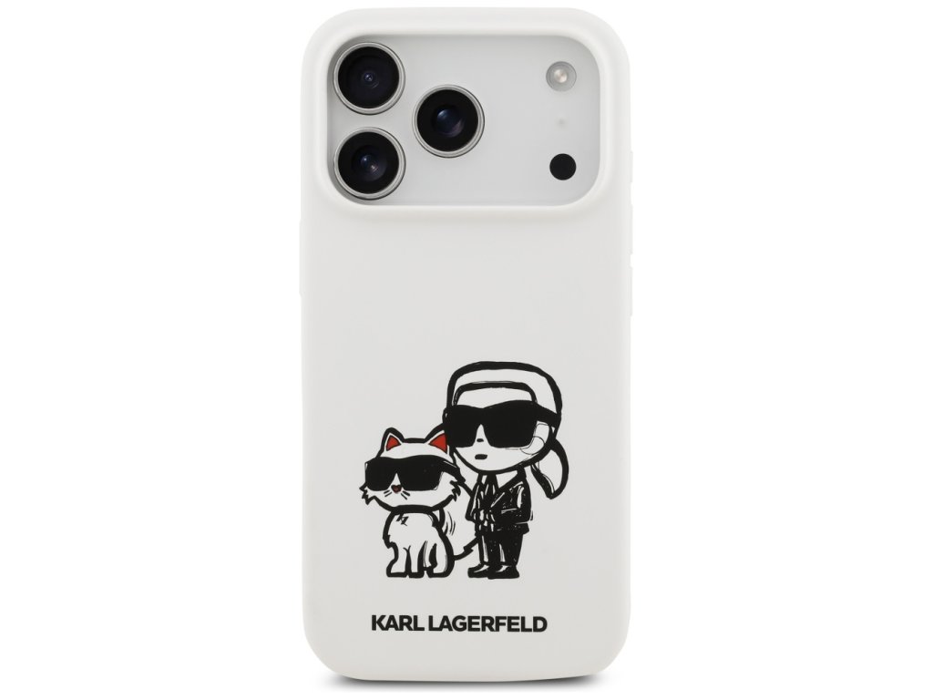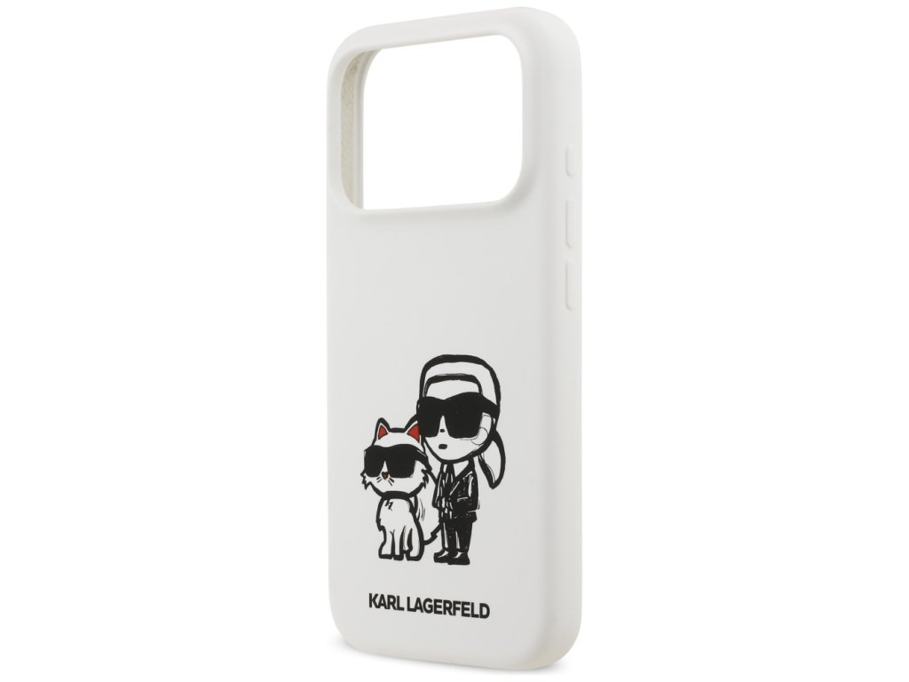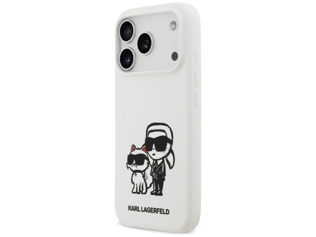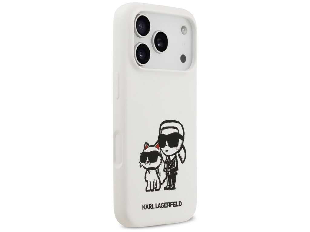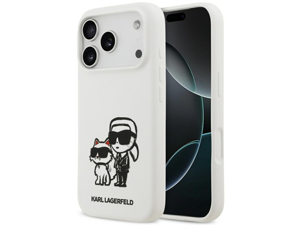Karl Lagerfeld – Silicone Sketch & Logo obal na iPhone 17 Pro – bílý Karl & Choupette