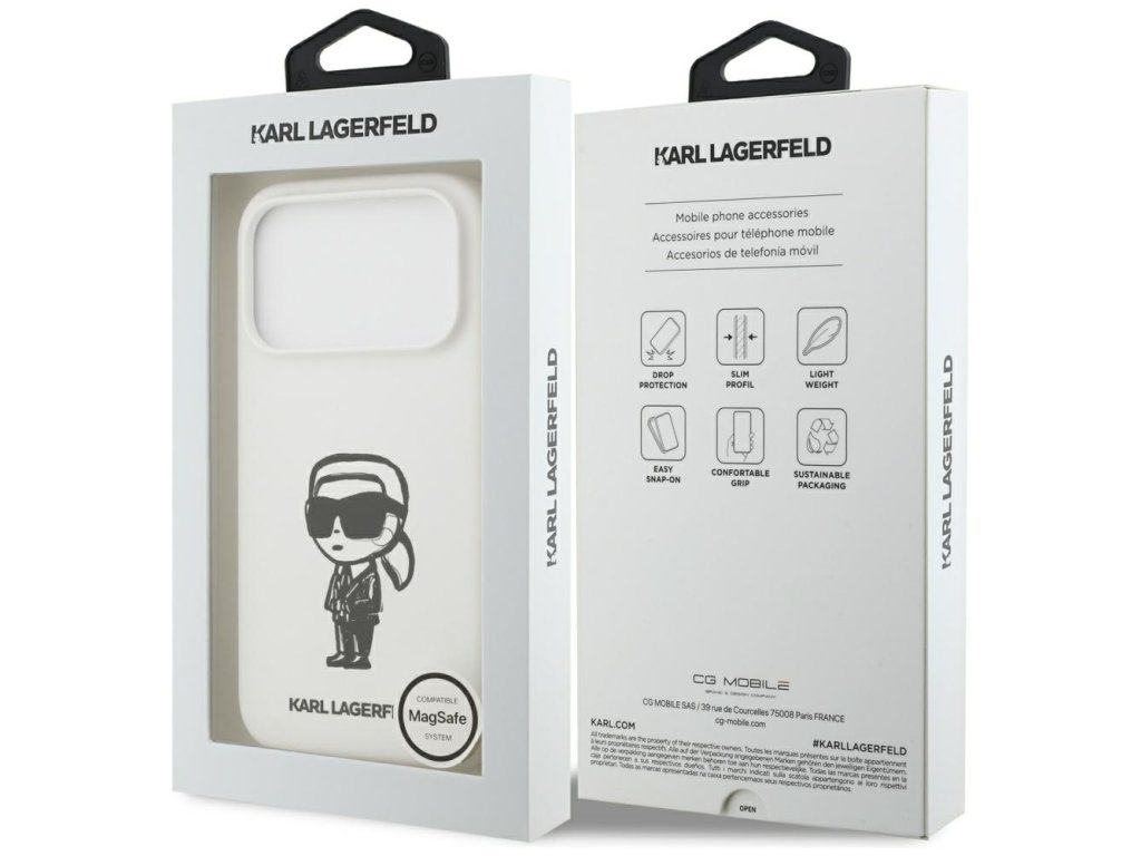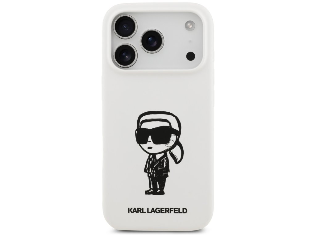 Karl Lagerfeld – Silicone Sketch & Logo obal na iPhone 17 Pro – bílý Karl