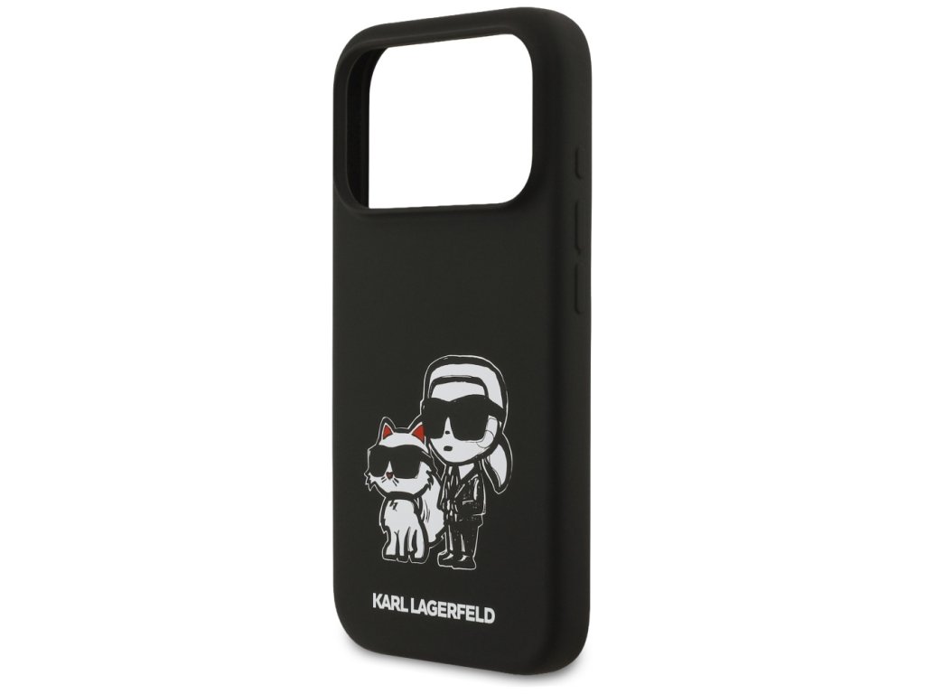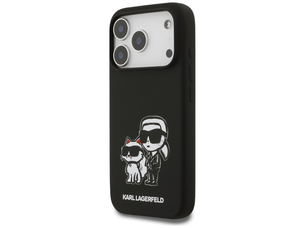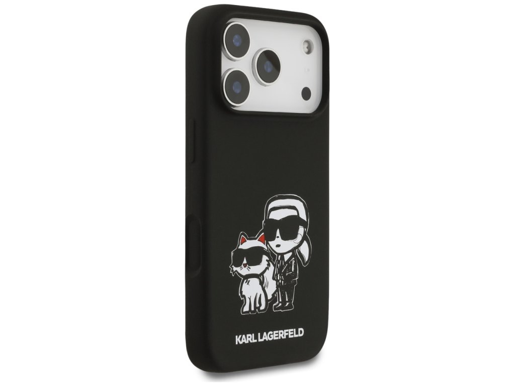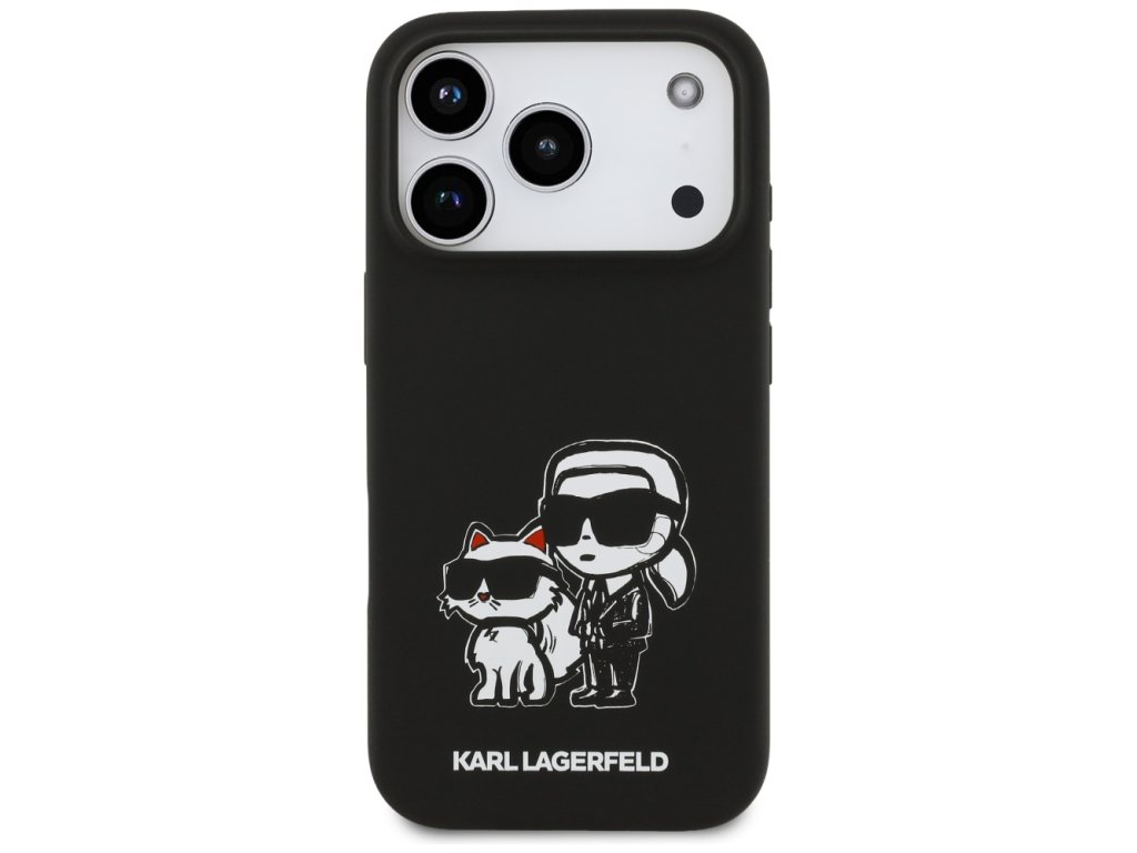 Karl Lagerfeld – Silicone Sketch & Logo obal na iPhone 17 Pro – černý Karl & Choupette
