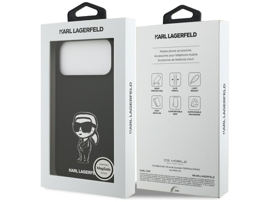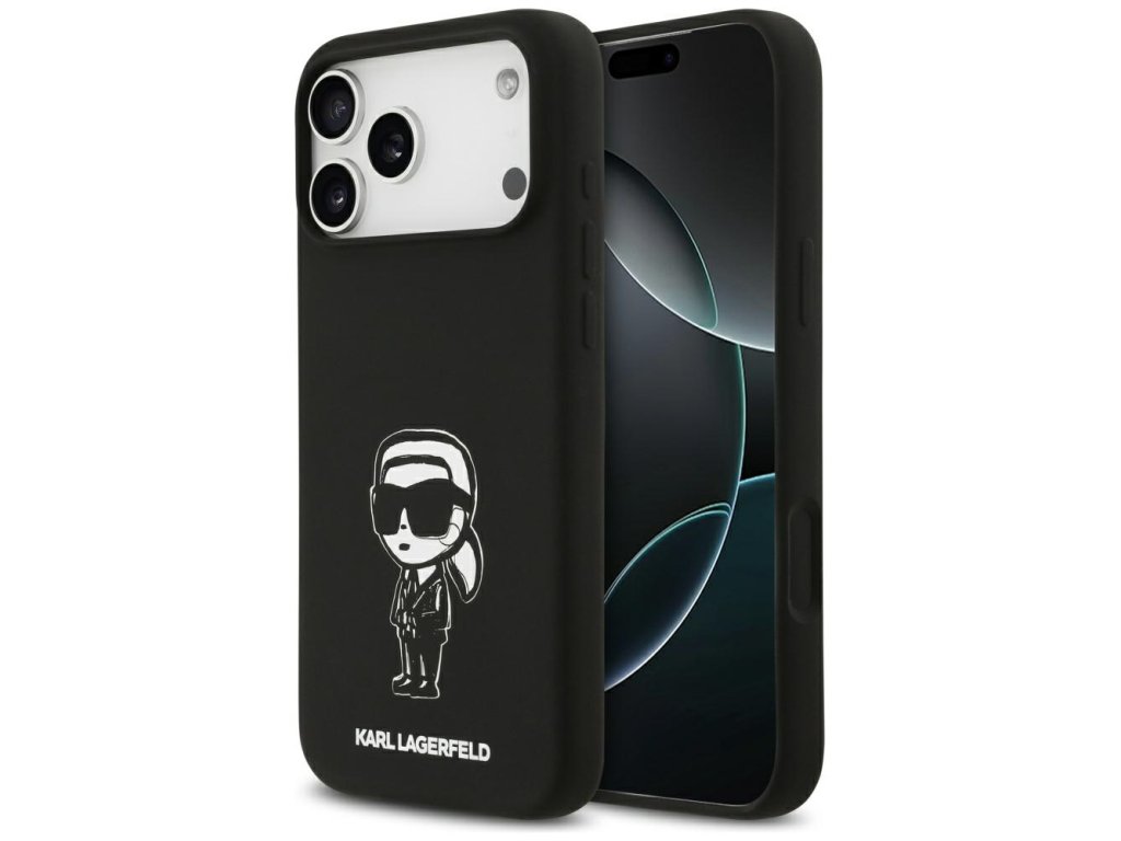 Karl Lagerfeld – Silicone Sketch & Logo obal na iPhone 17 Pro Max – černý Karl