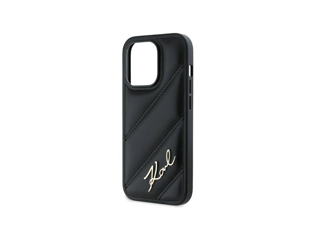 Karl Lagerfeld Diagonal Quilted Script kryt na iPhone 14 Pro Max (KLHCP14XPQDSMGK) - černý