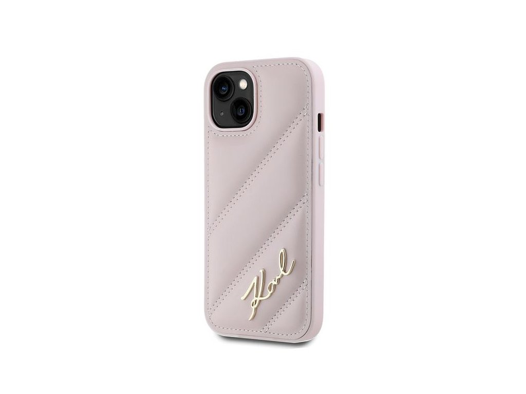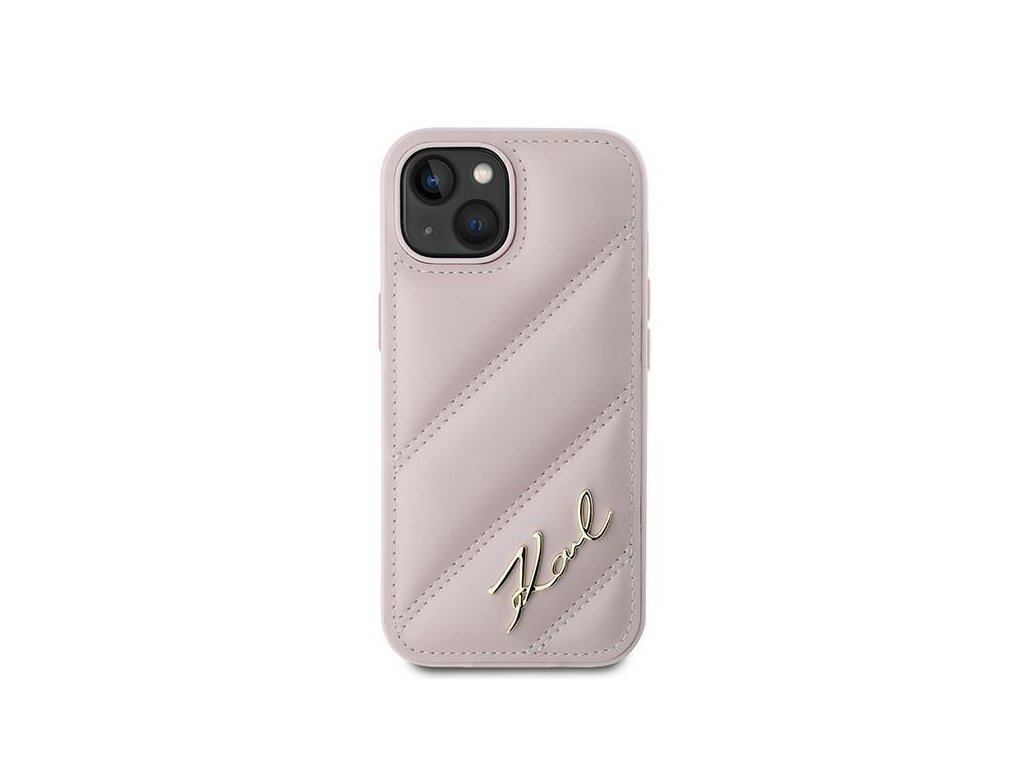 Karl Lagerfeld Diagonal Quilted Script kryt na iPhone 15 Plus (KLHCP15MPQDSMGP) - růžový
