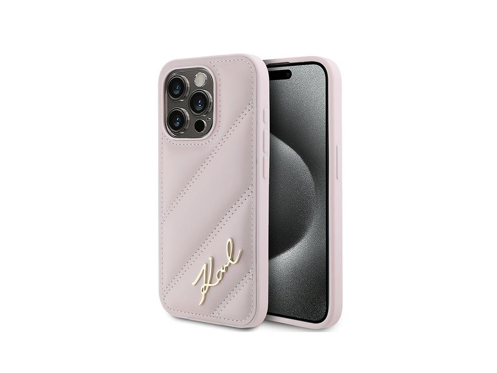 Karl Lagerfeld Diagonal Quilted Script kryt na iPhone 15 Pro (KLHCP15LPQDSMGP) - růžový