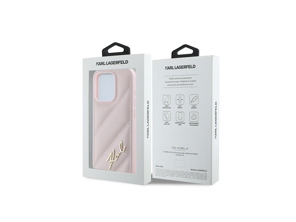 Karl Lagerfeld Diagonal Quilted Script kryt na iPhone 15 Pro Max (KLHCP15XPQDSMGP) - růžový