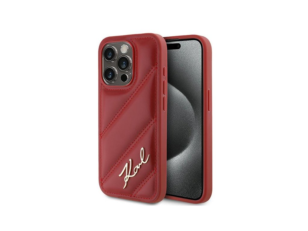 Karl Lagerfeld Diagonal Quilted Script kryt na iPhone 15 Pro Max (KLHCP15XPQDSMGR) - červený