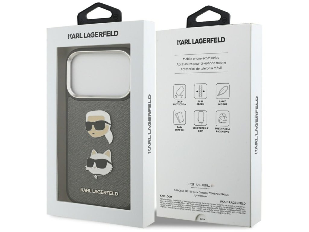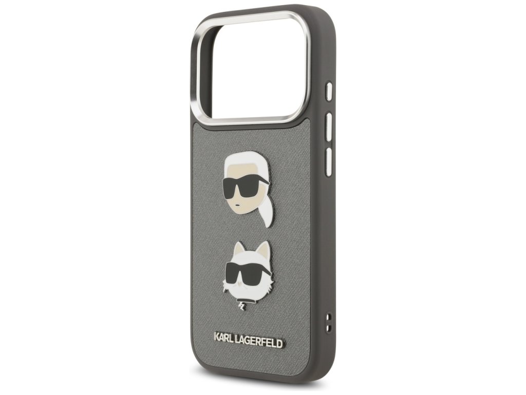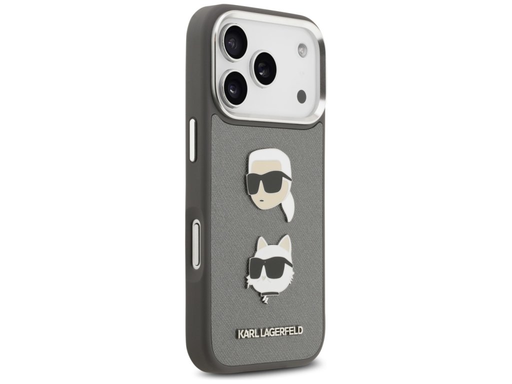 Karl Lagerfeld - Hardcase Grained K&C Heads Pins and Logo pouzdro pro iPhone 17 Pro - šedé