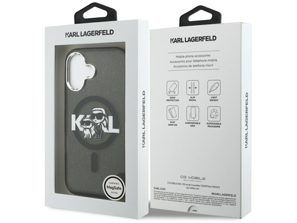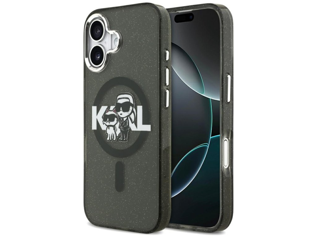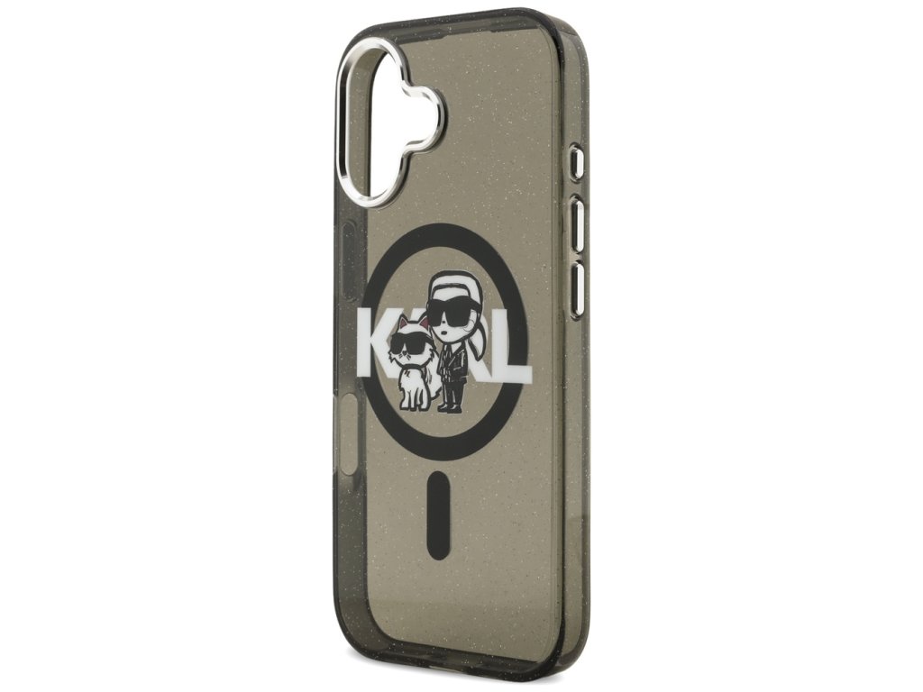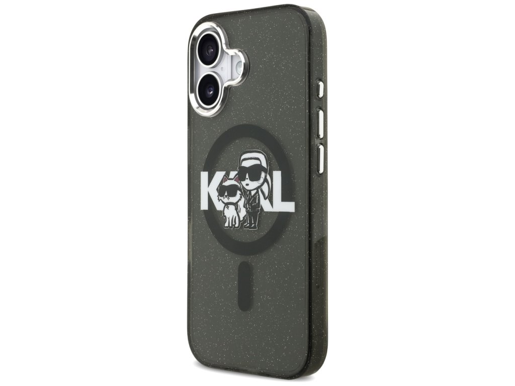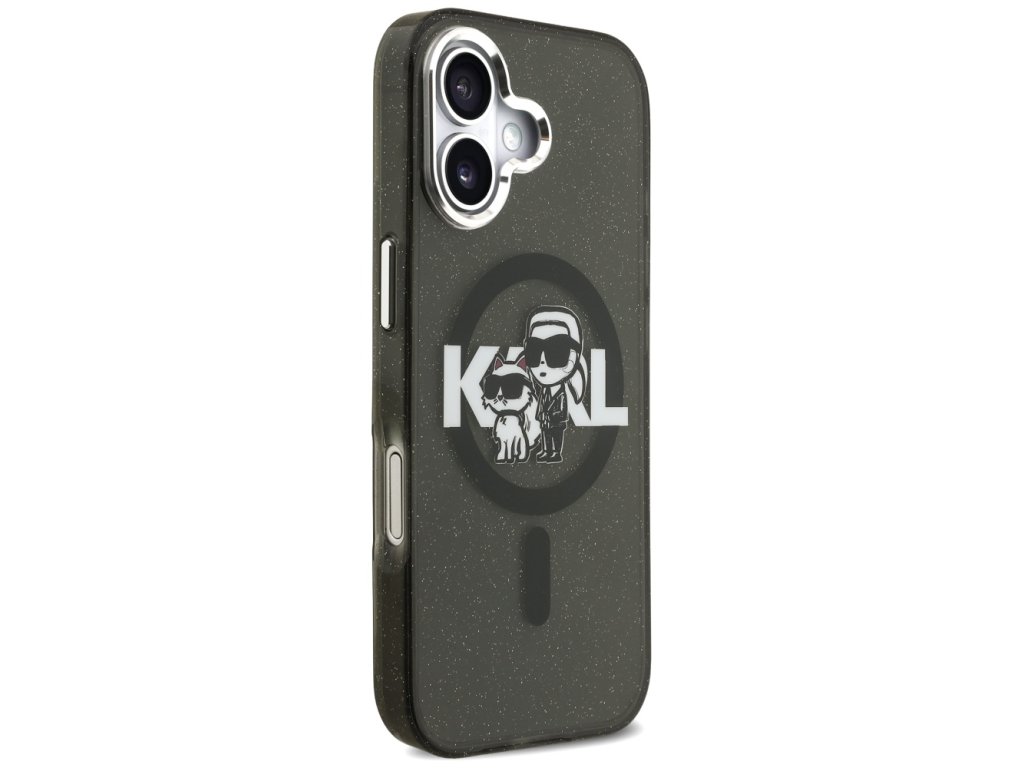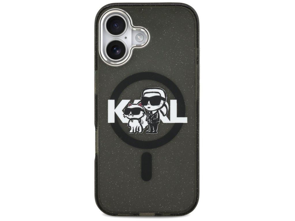 Karl Lagerfeld - IML Glitter Karl & Choupette Sketch Logo MagSafe pouzdro pro iPhone 17 - černé