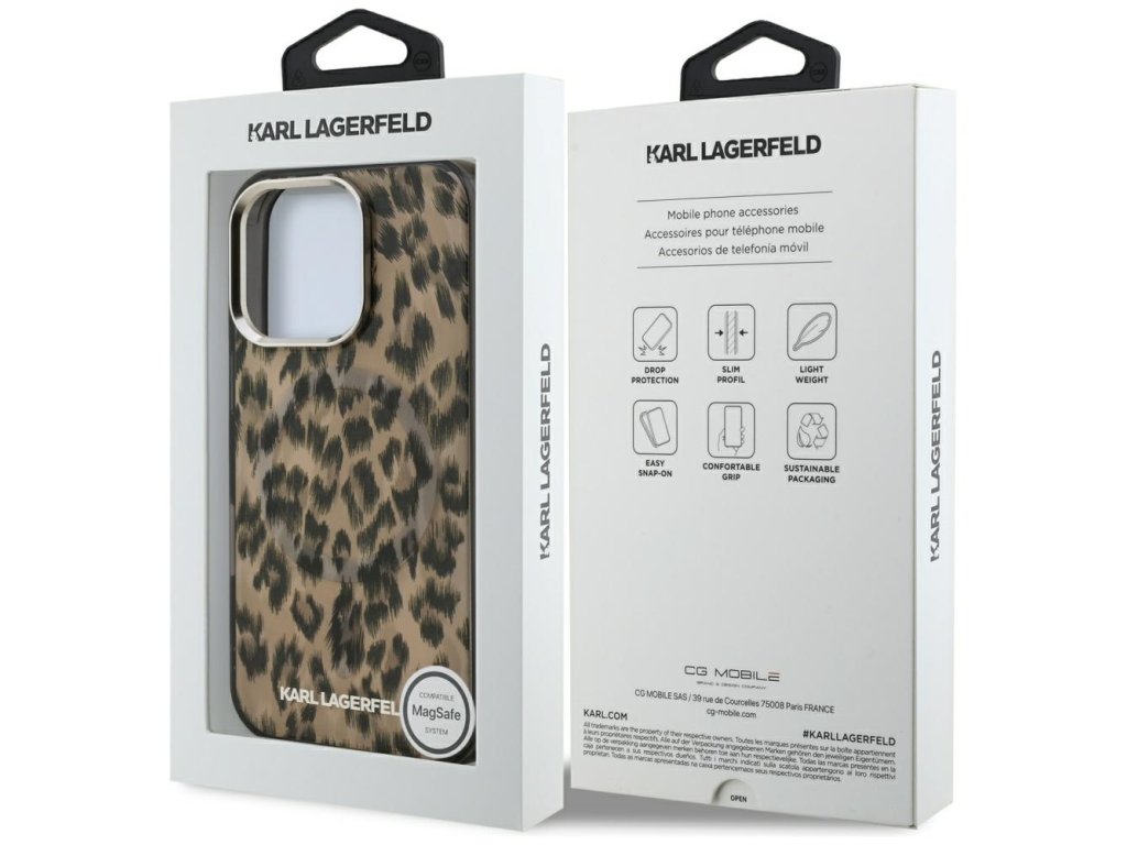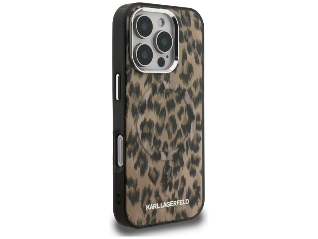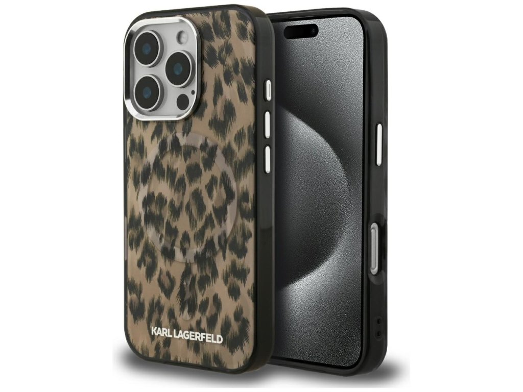 Karl Lagerfeld - IML Leopard Pattern MagSafe obal na iPhone 16 Pro - hnědý