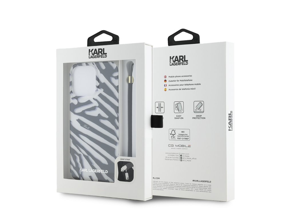 Karl Lagerfeld IML Luxury kryt na iPhone 15 Pro Max (KLHCP15XHZBPKCCK) - Zebra vzor & šňůrka