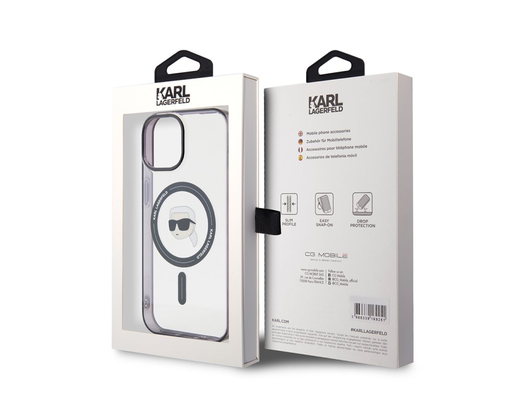 Karl Lagerfeld IML MagSafe kryt na iPhone 15 Plus (KLHMP15MHKHNOTK) - průsvitná Karl hlava