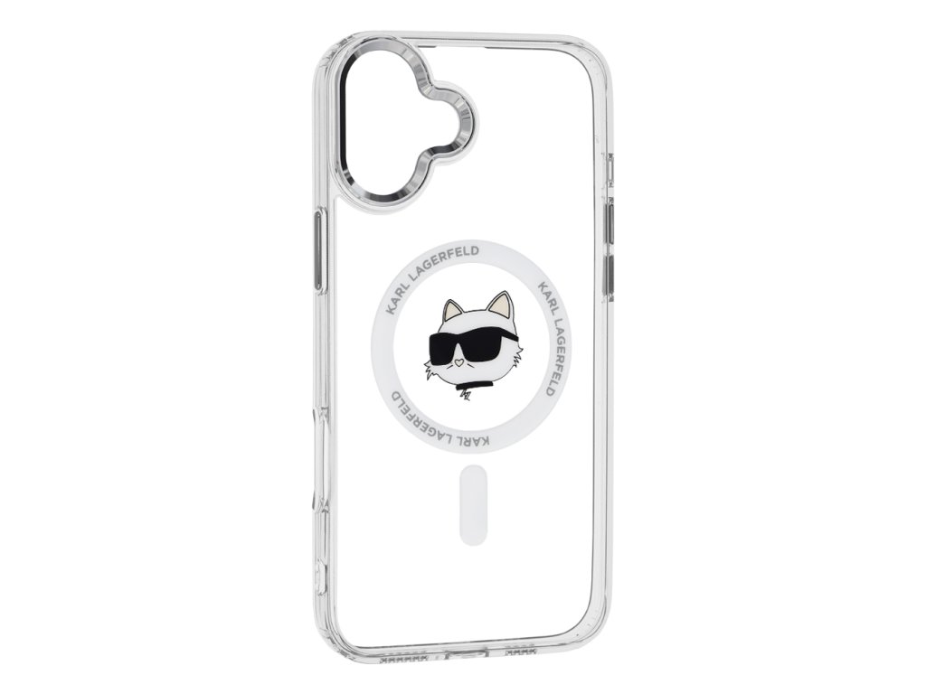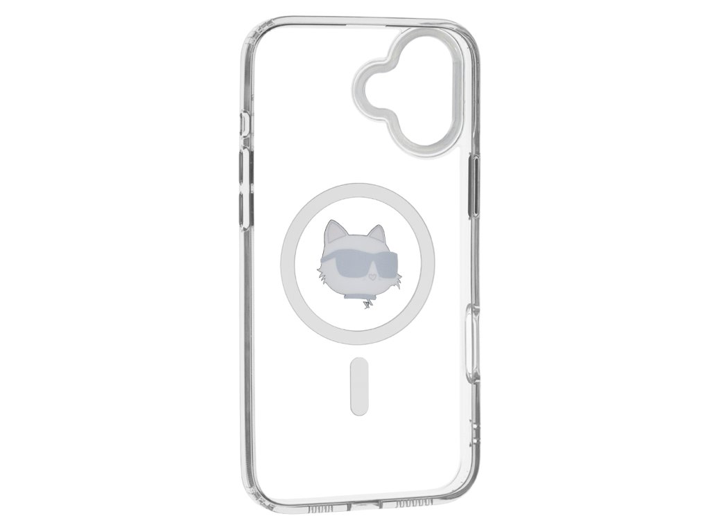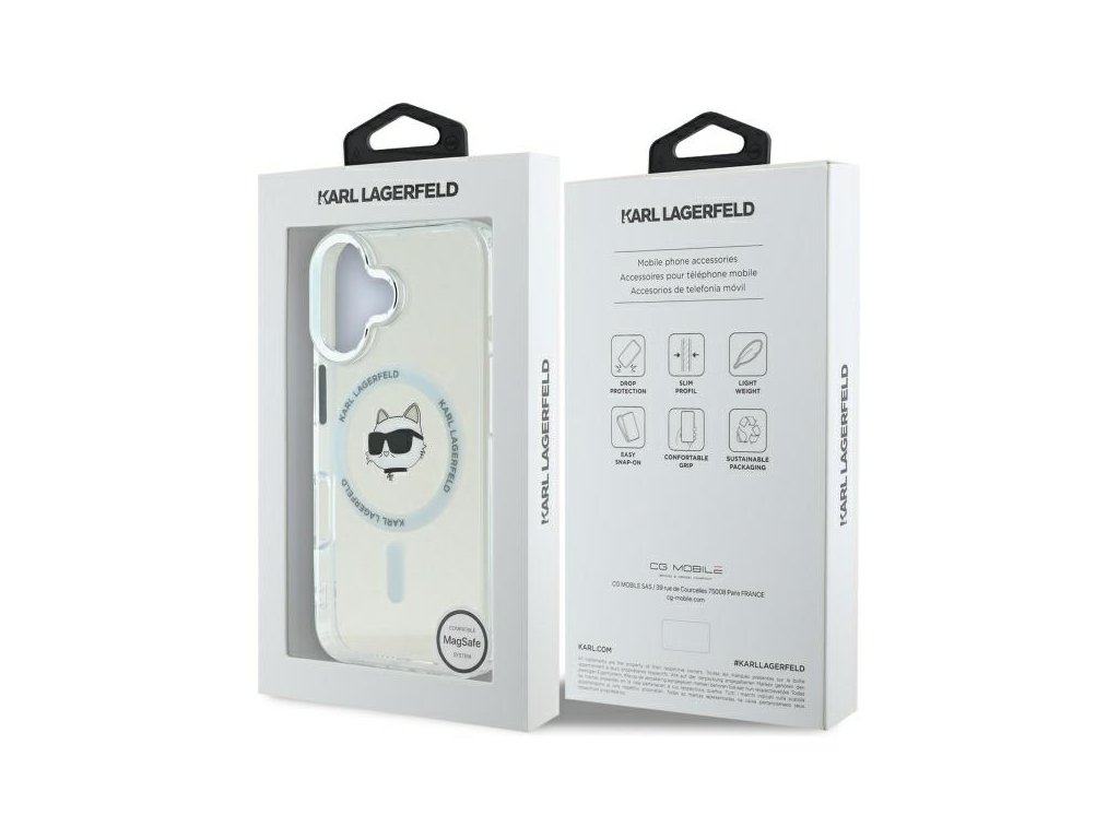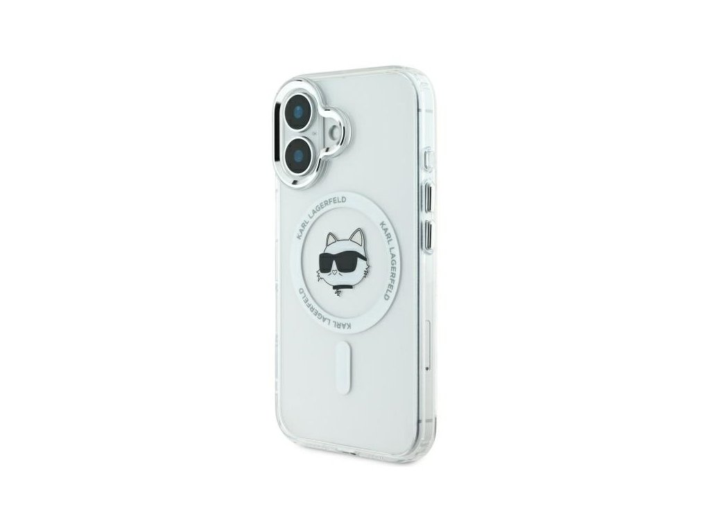 Karl Lagerfeld IML MagSafe kryt na iPhone 16 (KLHMP16SHLSCHH) - bílá kovová Choupette hlava