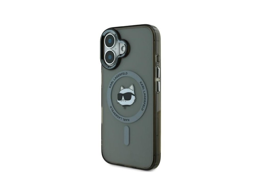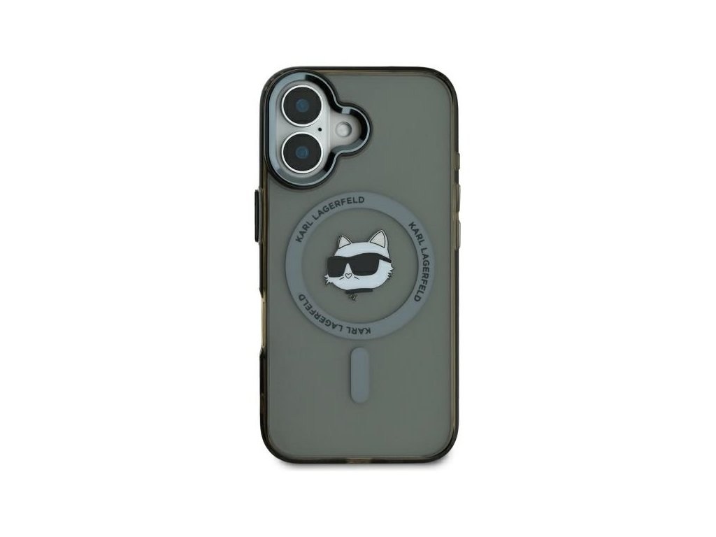 Karl Lagerfeld IML MagSafe kryt na iPhone 16 (KLHMP16SHLSCHK) - kovová Choupette hlava