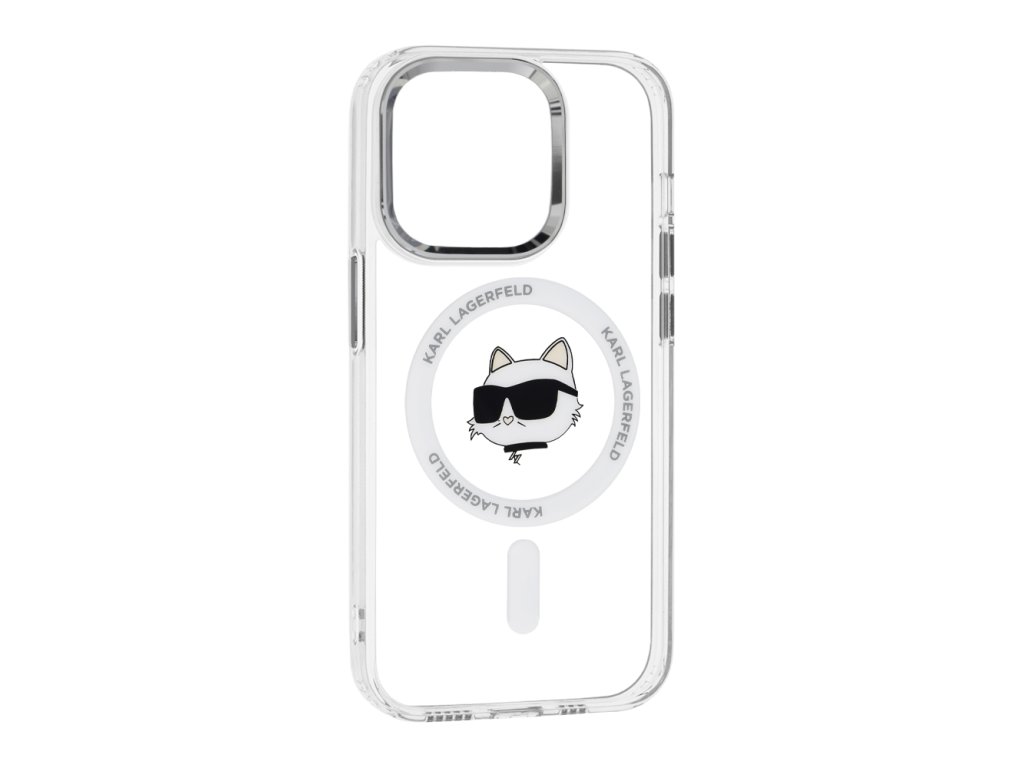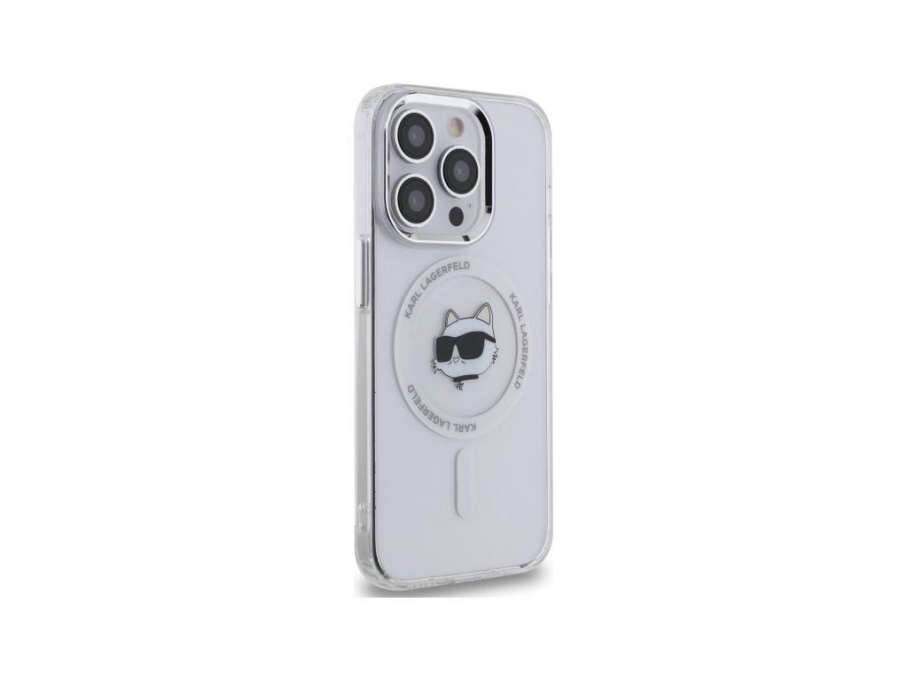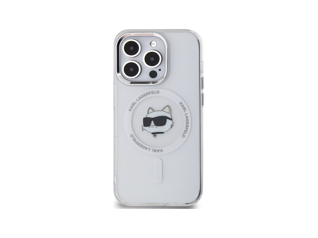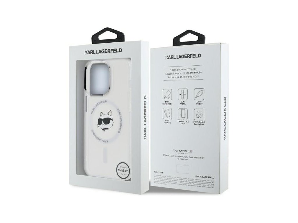 Karl Lagerfeld IML MagSafe kryt pro iPhone 14 Pro (KLHMP14LHLSCHH) - bílá kovová Choupette hlava