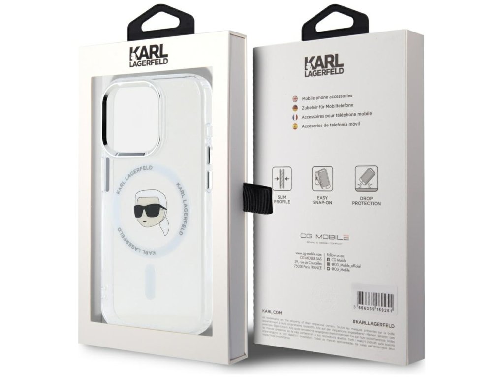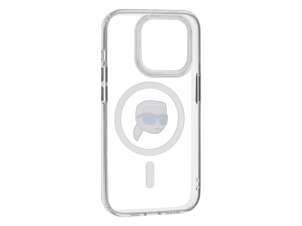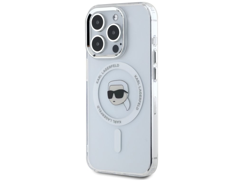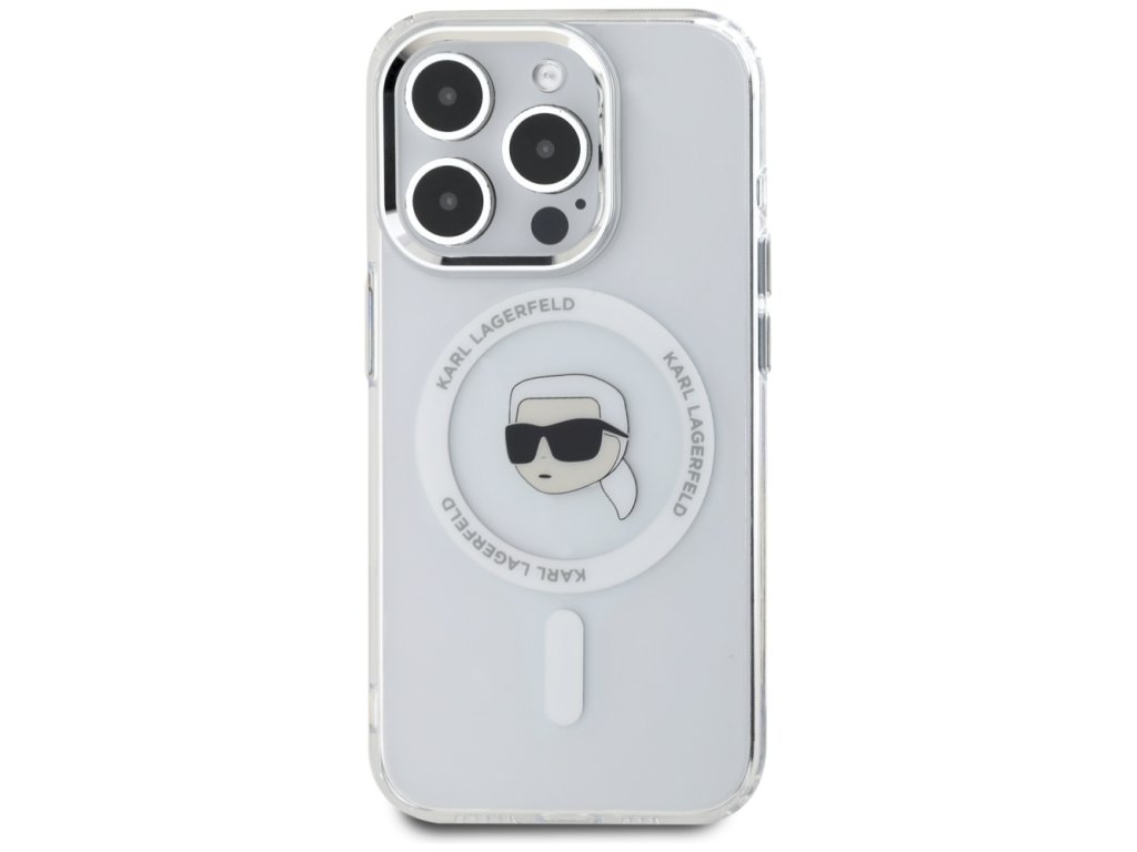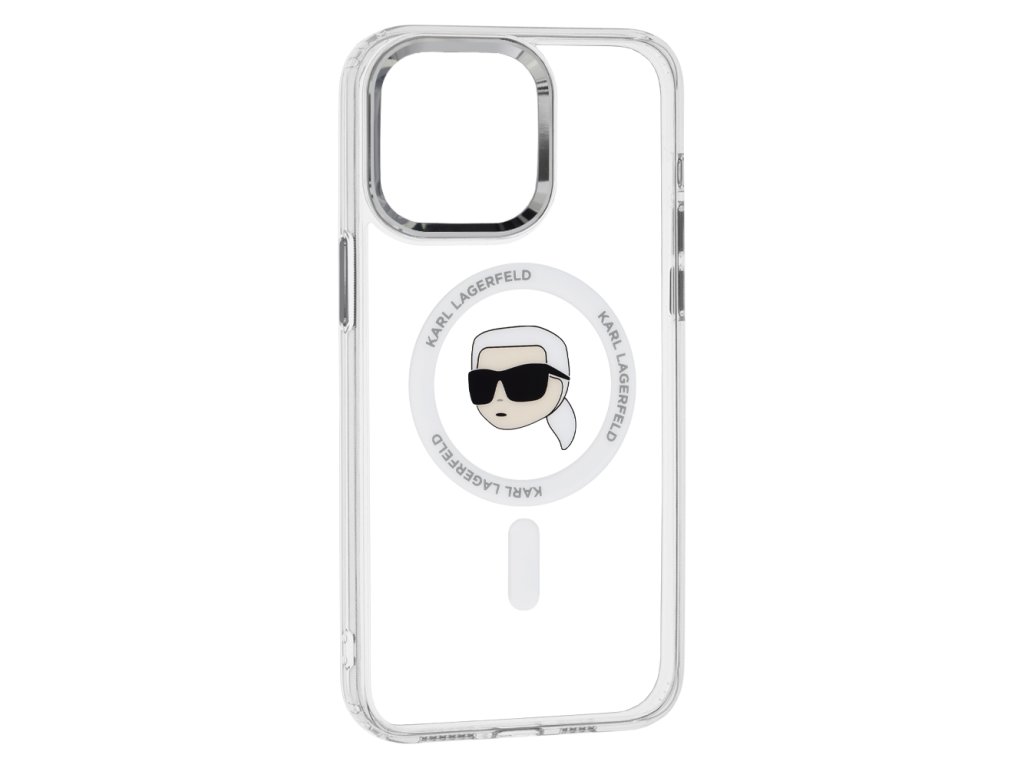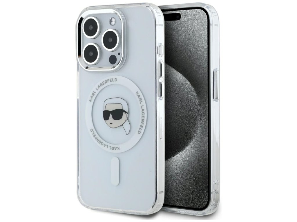 Karl Lagerfeld IML MagSafe Kryt pro iPhone 15 Pro Max – bílý s kovovým logem Karl