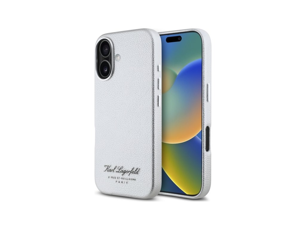 Karl Lagerfeld kožený kryt "Leather Hotel" pro iPhone 16 (KLHCP16SPGWCMKHG) - šedý RSG