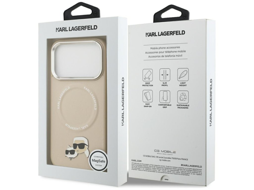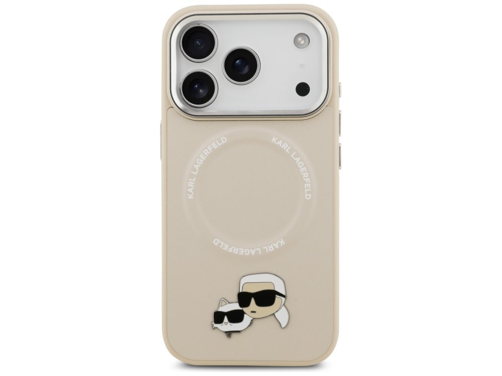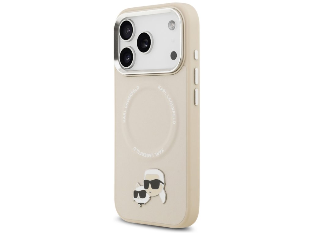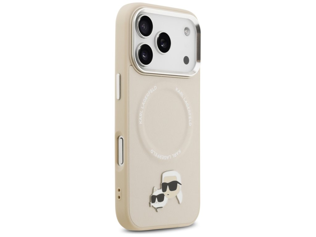 Karl Lagerfeld - Leather K&C Pins MagSafe pouzdro pro iPhone 17 Pro Max - béžové