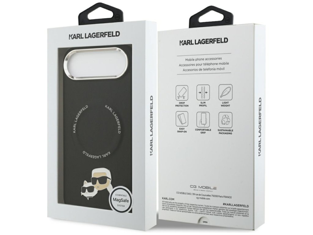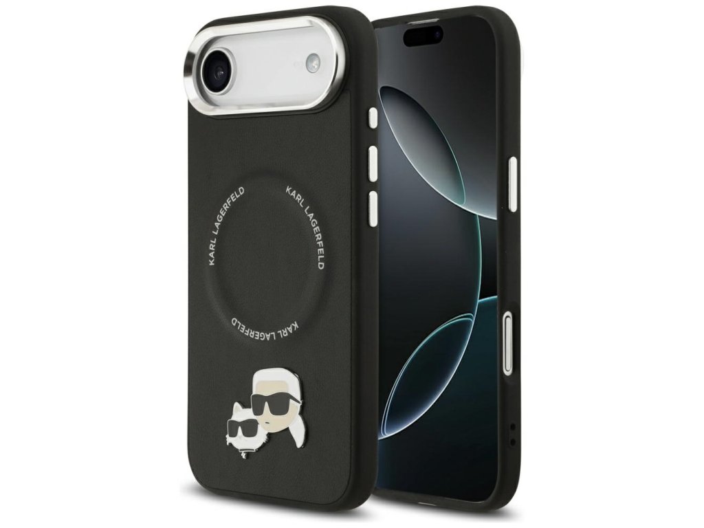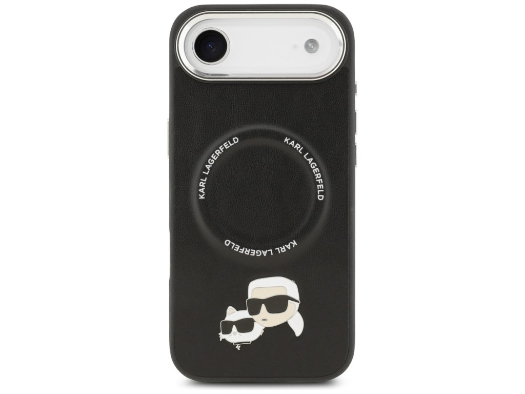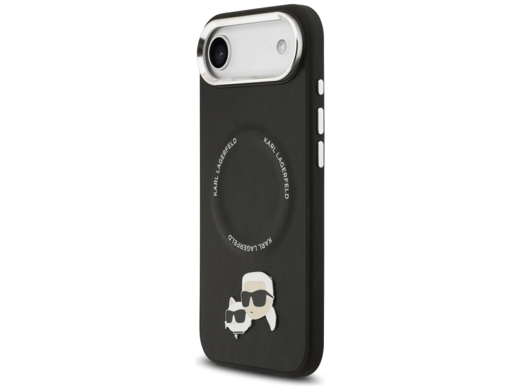 Karl Lagerfeld - Leather Karl & Choupette Pins MagSafe pouzdro pro iPhone 17 Air - černé