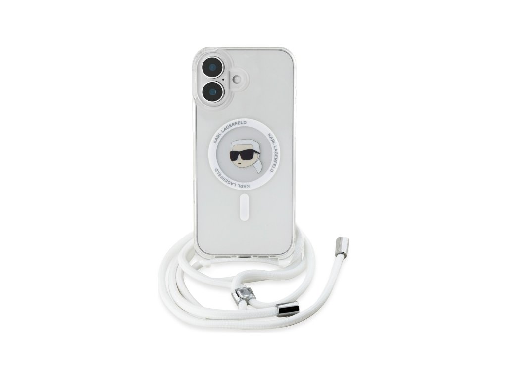 Karl Lagerfeld obal Crossbody MagSafe (KLHMP16SHCKHNT) - iPhone 16 - Transparentní hlava Karla