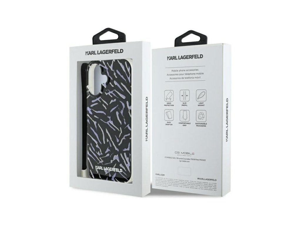 Karl Lagerfeld pevný kryt (KLHCP16MHZBPKCCU) na iPhone 16 Plus - fialový Zebra se šňůrkou