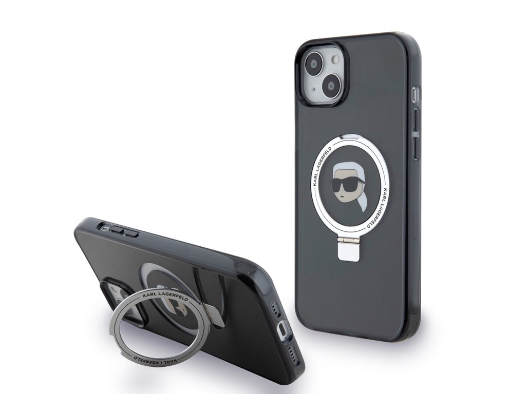 Karl Lagerfeld pevný kryt s prstenem a MagSafe na iPhone 15 Plus (KLHMP15MHMRSKHK) - Karl Head