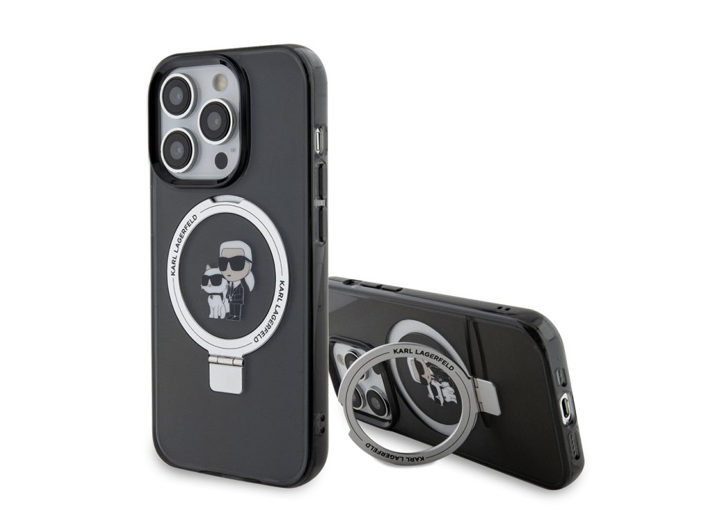 Karl Lagerfeld pevný kryt s prstenem a MagSafe na iPhone 15 Pro (KLHMP15LHMRSKCK) - Karl&Choupette