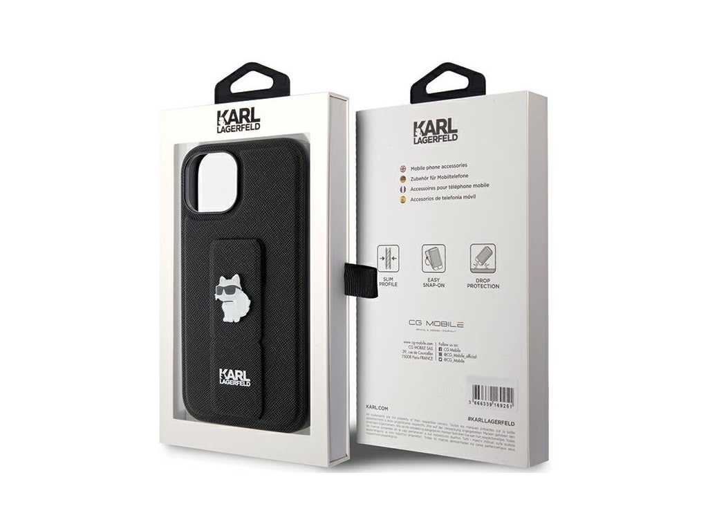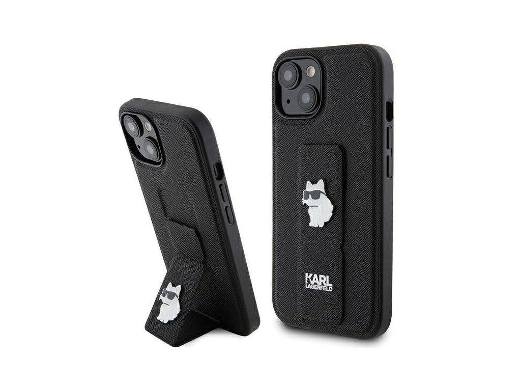 Karl Lagerfeld Saffiano Gripstand kryt na iPhone 15 Plus (KLHCP15MGSACHPK) - Choupette odznaky