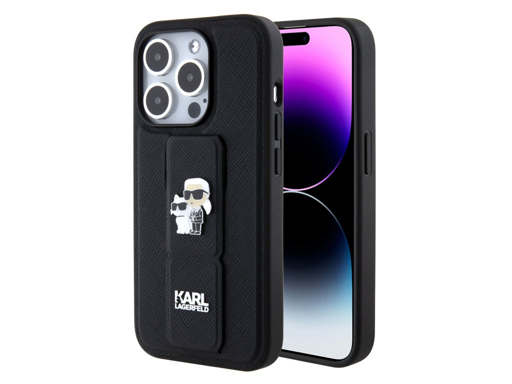 Karl Lagerfeld Saffiano Gripstand kryt pro iPhone 15 Pro (KLHCP15LGSAKCPK) - Karl&Choupette odznaky
