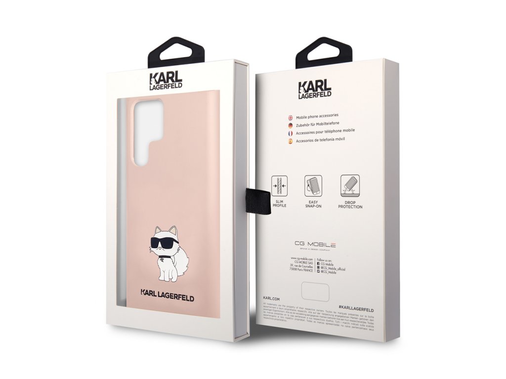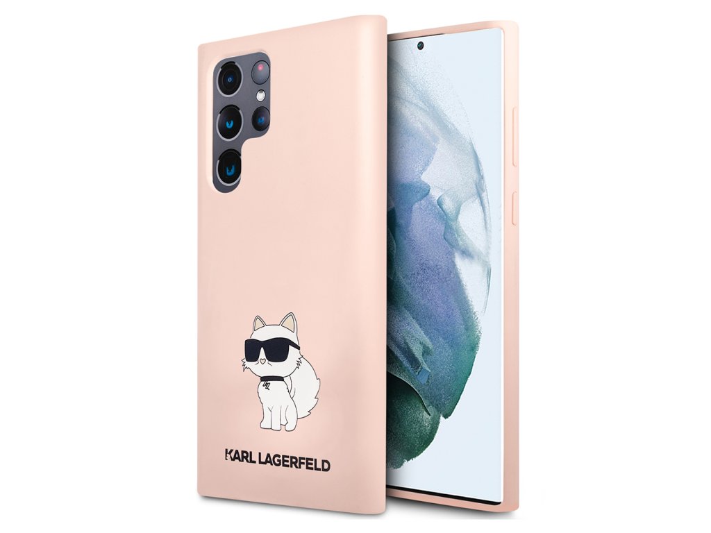 Karl Lagerfeld Silicone (KLHCS23LSNCHBCP) kryt na Samsung Galaxy S23 Ultra – Růžový Choupette