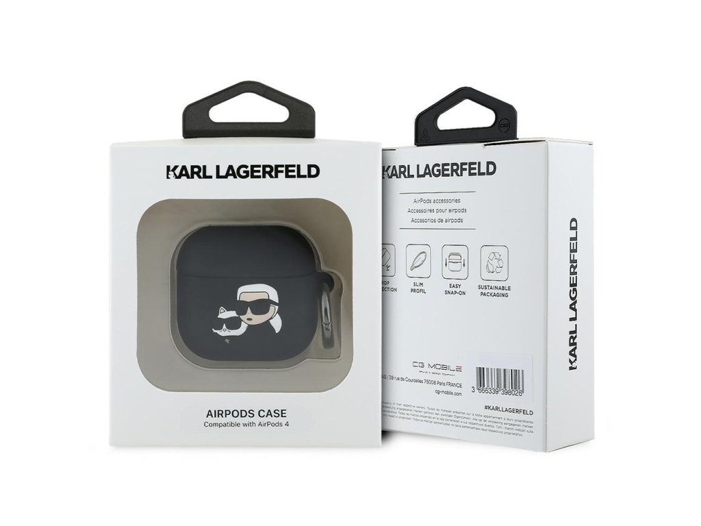 Karl Lagerfeld Silicone Karl&Choupette Head 3D (KLA4RUNKCHK) obal pro Apple AirPods 4 – Černý