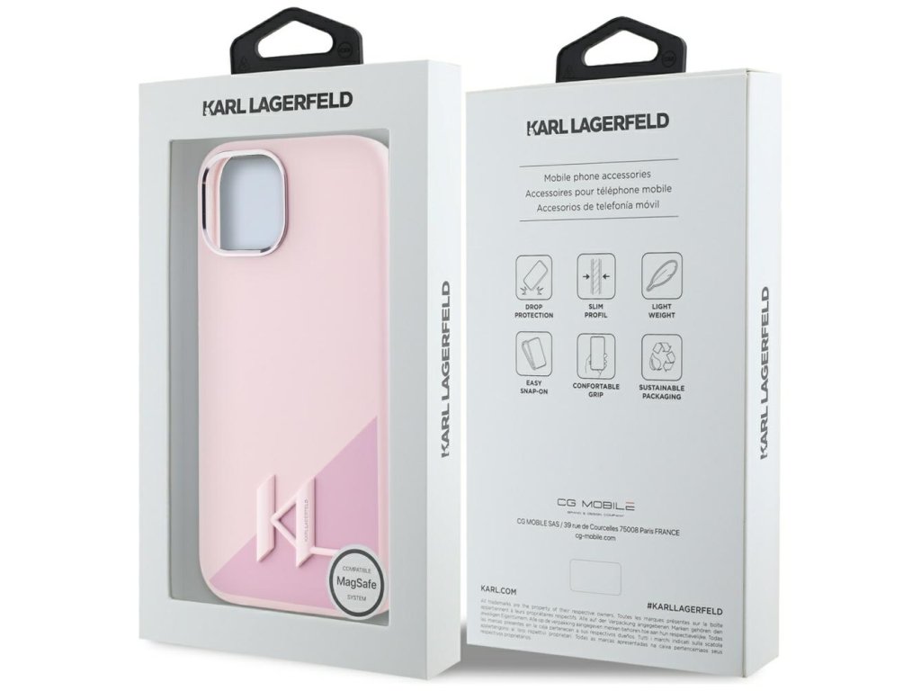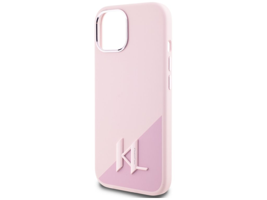 Karl Lagerfeld Silicone MagSafe Kryt pro iPhone 15 – růžový Shadow Metal Initial