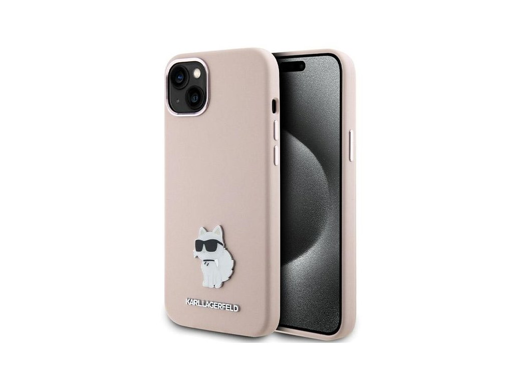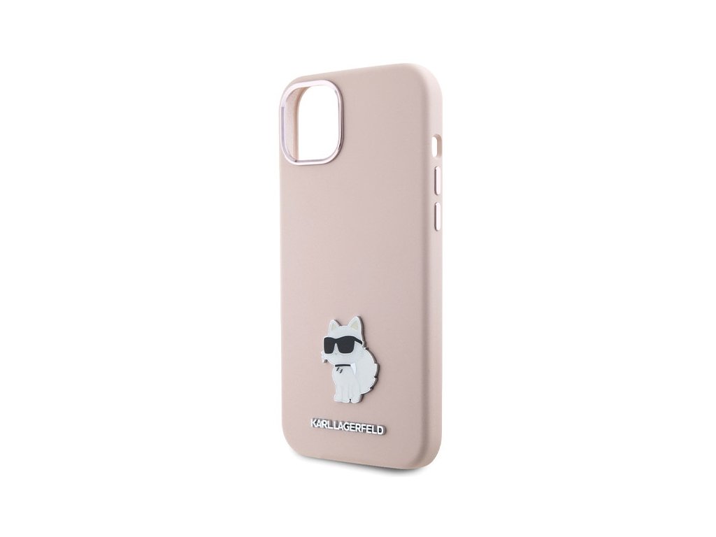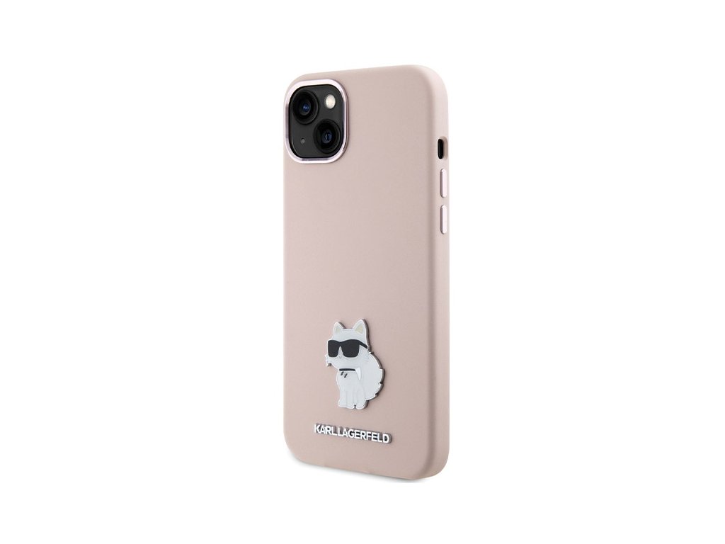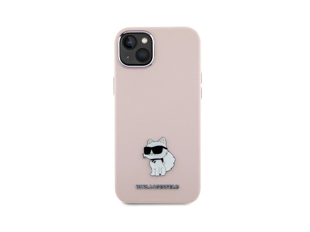 Karl Lagerfeld silikonový kryt na iPhone 15 Plus (KLHCP15MSMHCNPP) - růžový Choupette Metal Pin