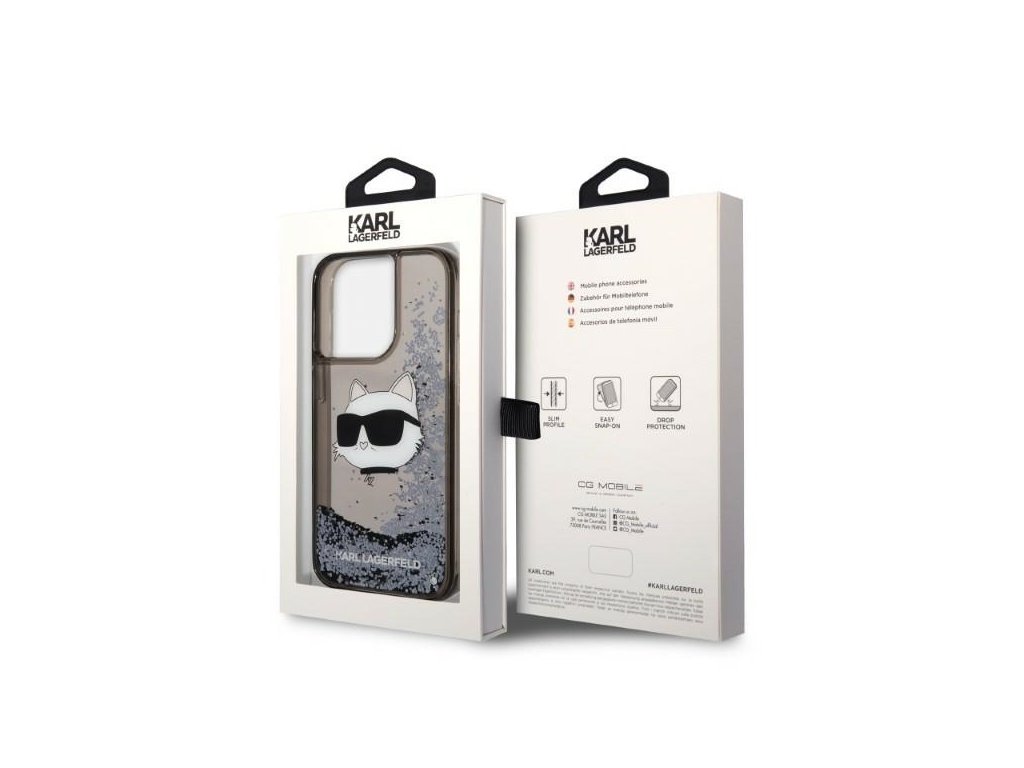 Karl Lagerfeld třpytivý pevný kryt (KLHCP14XLNCHCK) pro iPhone 14 Pro Max - Choupette Head