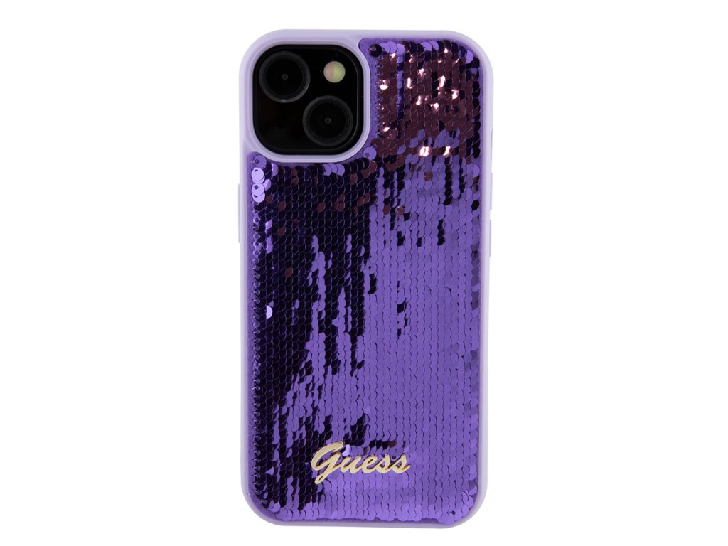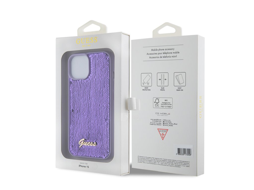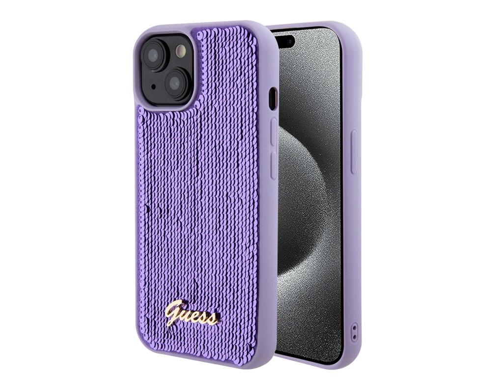 Kryt Guess Sequin Script Metal na iPhone 15 (GUHCP15SPSFDGSU) - fialový